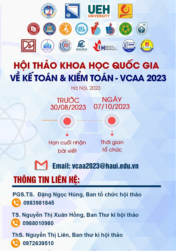 The Vietnam Conference on Accounting & Auditing 2023 (VCAA 2023) is an annual conference held alternately at universities in order to open a forum to share and exchange experiences as well as views on training innovation, research on accounting and auditing at training institutions in Vietnam. The theme of the Conference in 2023 is "Accounting - Auditing in the digital economy and international integration".