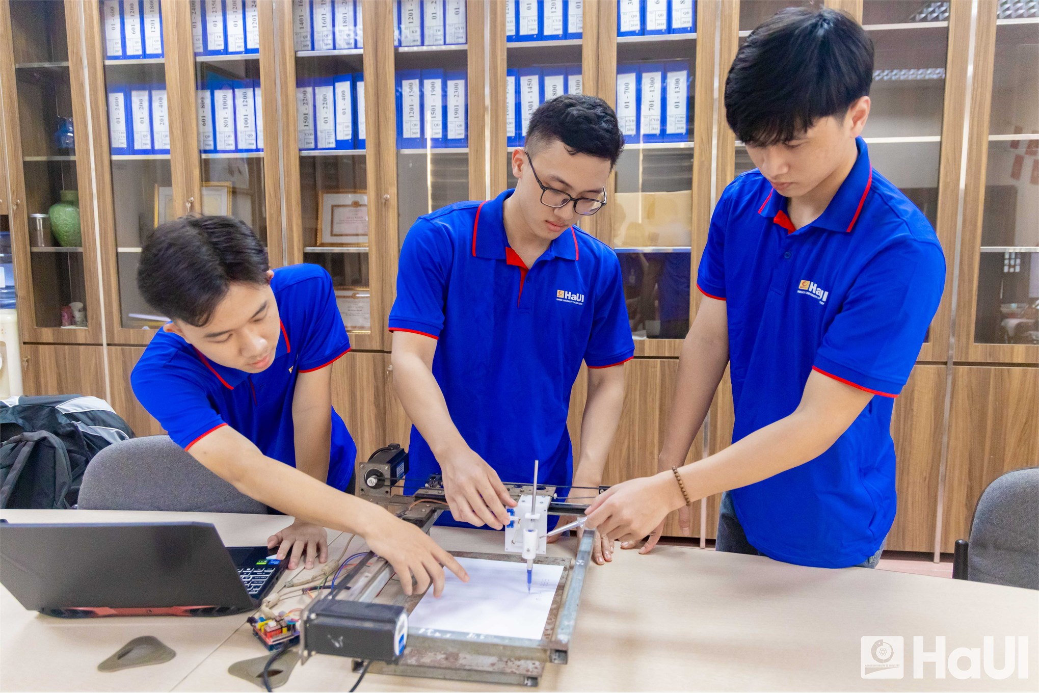 A group of second-year students from the School of Electrical and Electronic Engineering at Hanoi University of Industry (HaUI) has developed a meaningful and innovative product to support people with disabilities: an automatic handwriting system controlled by voice commands. Their project, titled “Application of Stepper Motors in Building a Writing Support System for People with Disabilities”, won Second Prize at HaUI’s university-level scientific research competition - an impressive result for a team participating for the very first time.