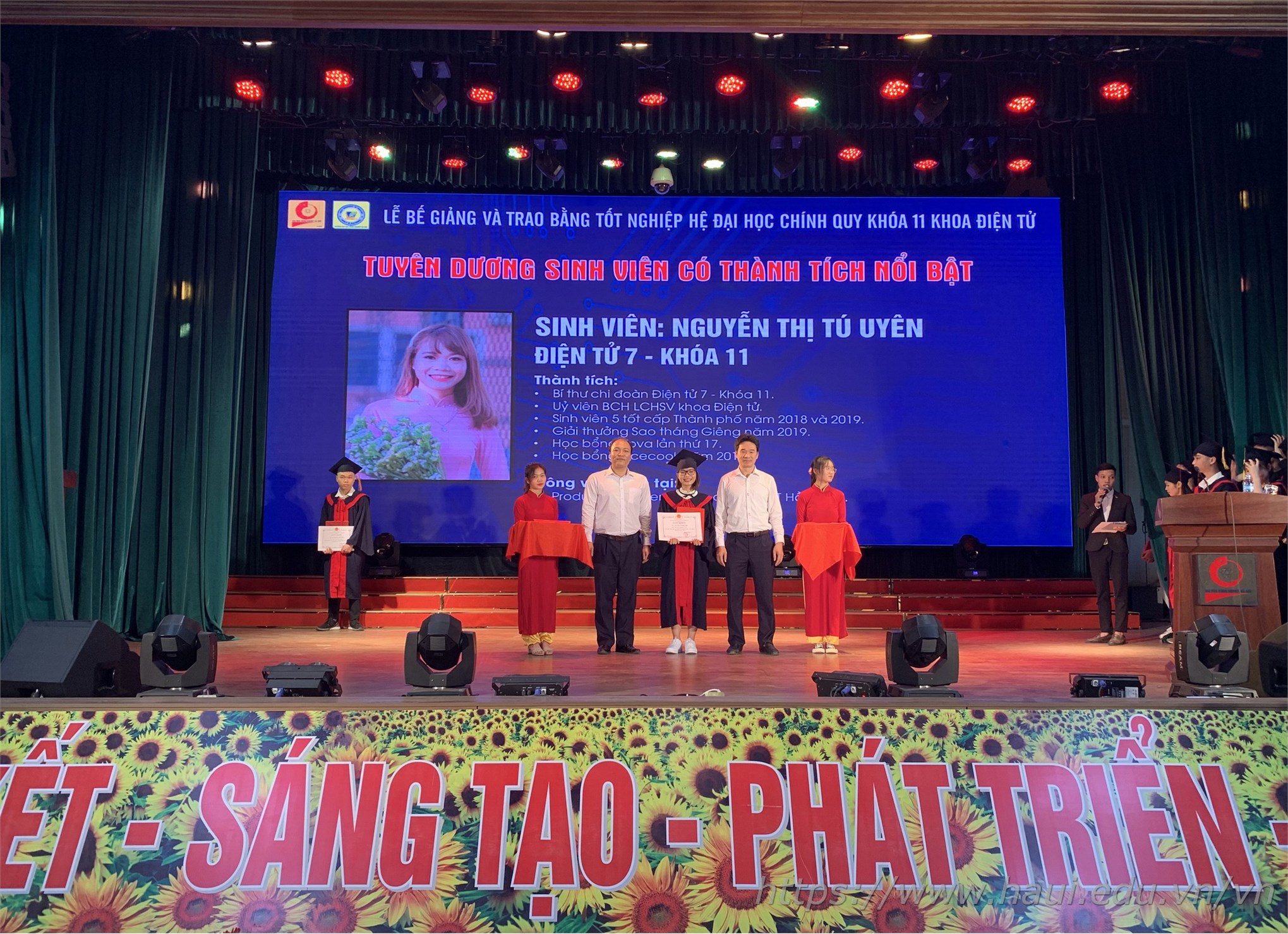 Nguyen Thi Tra, a student majoring in Mechanical Engineering from the Faculty of Mechanical Engineering, made a speech at the ceremony on behalf of the graduates. In the past four years, HaUI's mission has been driving the students to study hard and to move forward with determination. The students have witnessed the rapid development of HaUI. "Although it is a special graduation season, all the graduates like me will look for opportunities and strive to explore a bright future", Tra said.