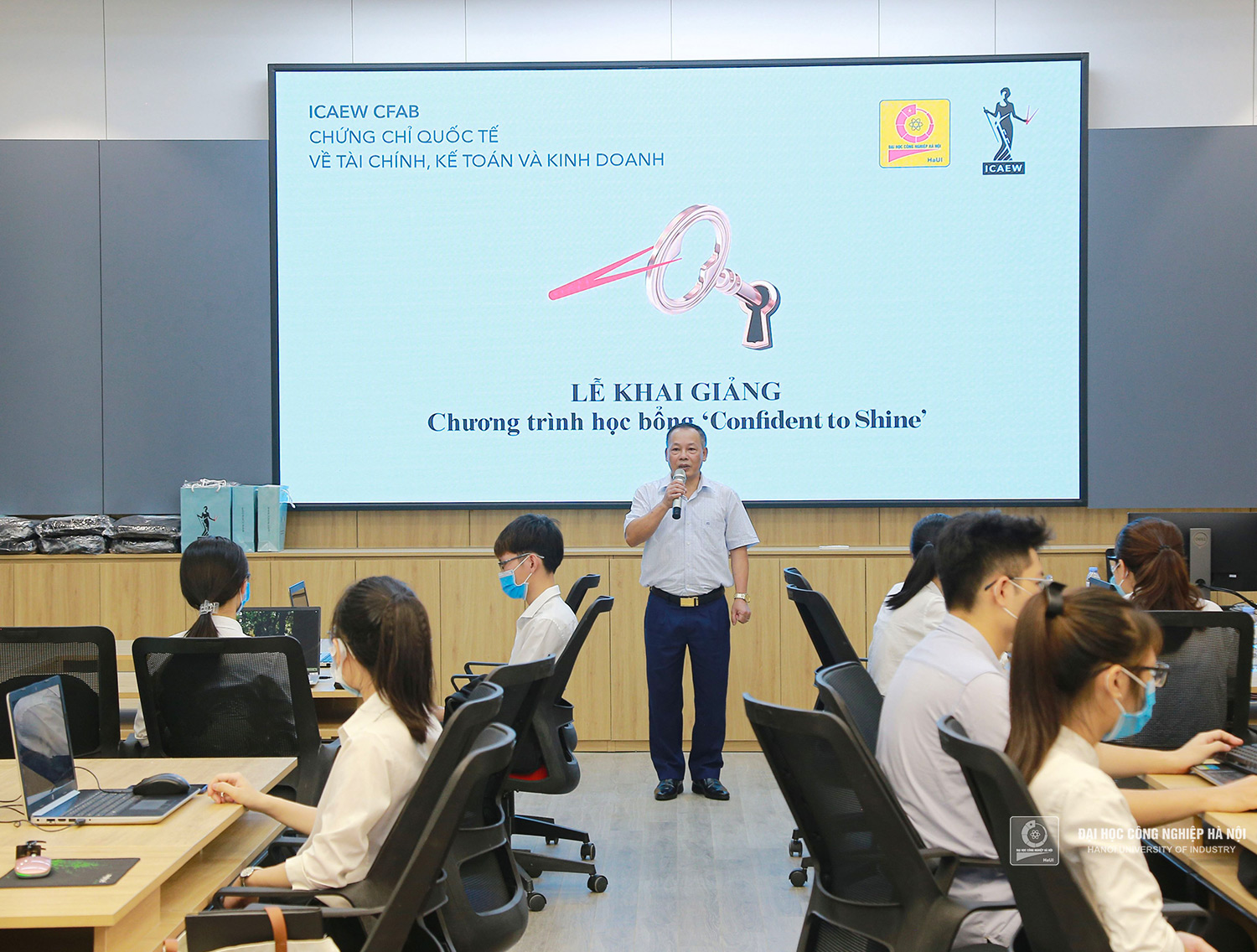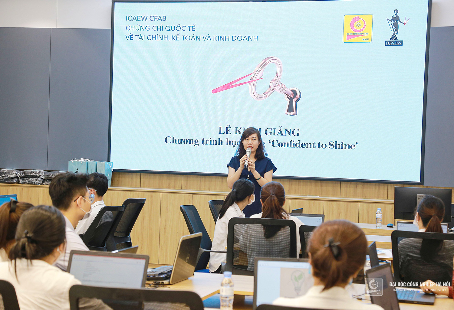 On the morning of July 6, 2021, Hanoi University of Industry (HaUI) in collaboration with the Institute of Chartered Accountants of England and Wales (ICAEW) held the Opening Ceremony of the "Confident to shine" scholarship program. This is the second sample class held in order to improve the quality of training for Accounting and Auditing students.