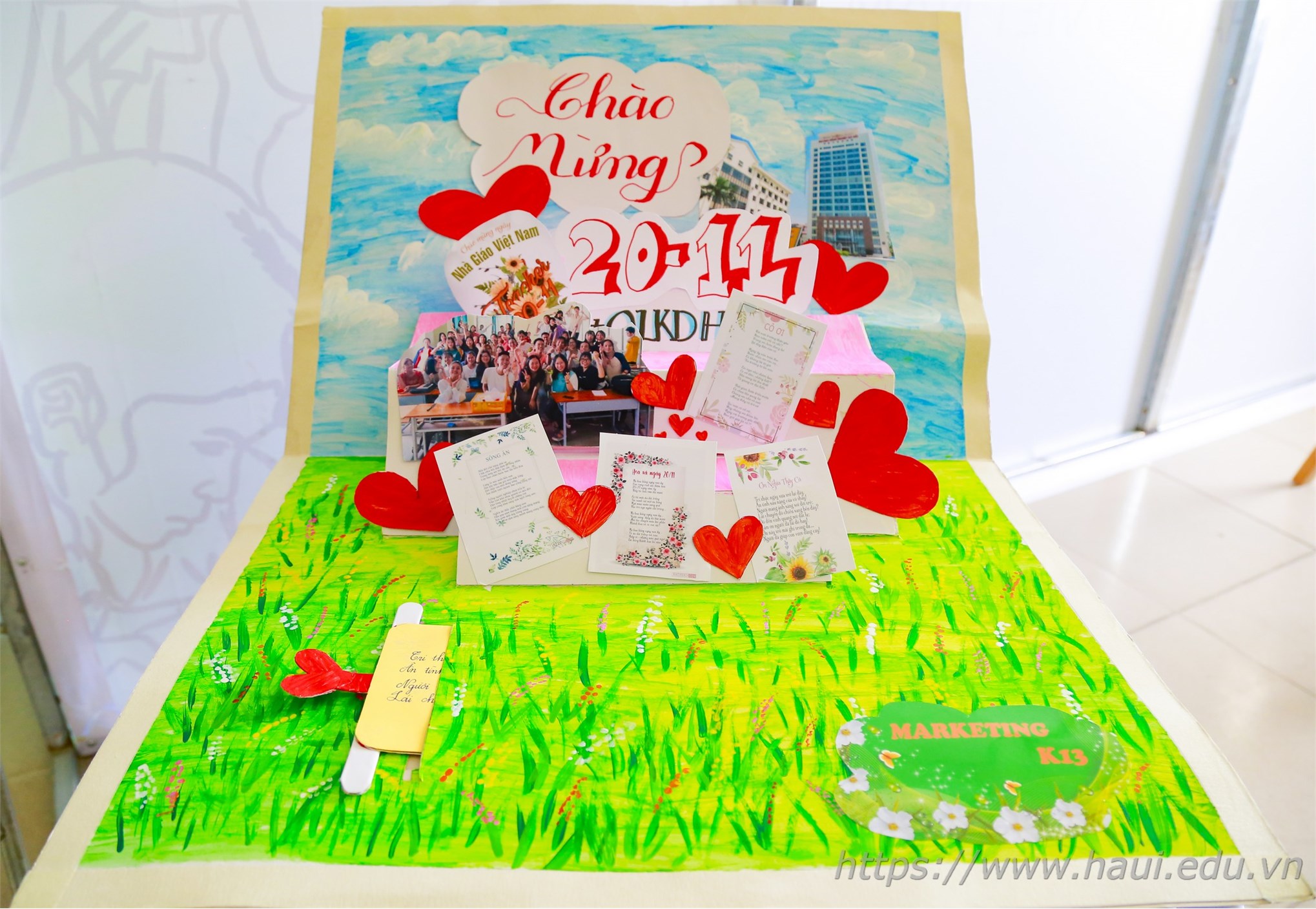 This is an opportunity for students to express their respect, trust, and gratitude to their teachers through lovely cards and warm greetings. In just 4 weeks, the contest attracted 50 classes in the Faculty of Business Administration to participate. Those cards were meticulously designed, sophisticated, creative in form and profound in content.