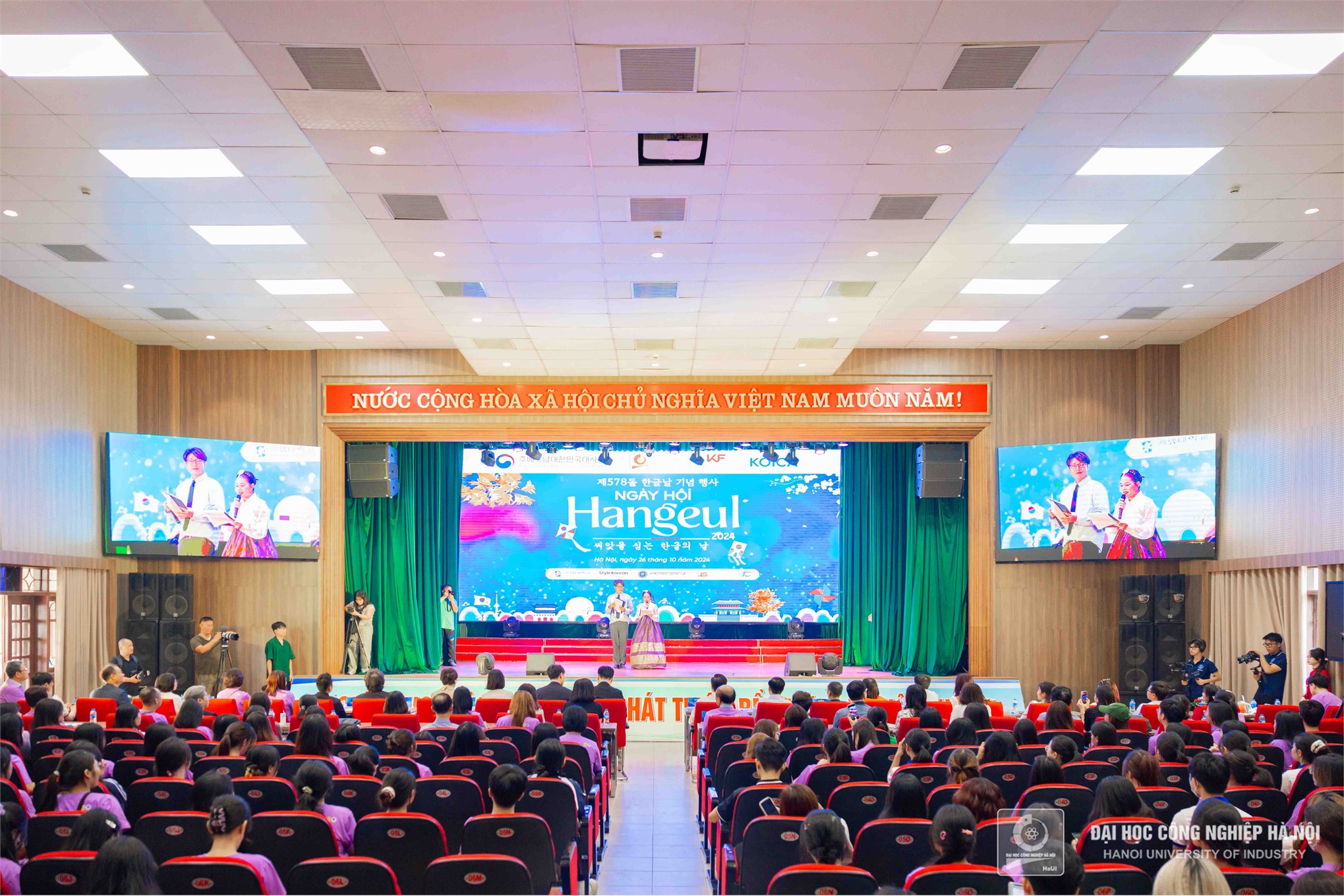 With a vibrant celebration filled with colorful activities rich in traditional Korean culture, the Hangeul Festival 2024 was held at Hanoi University of Industry (HaUI), drawing the participation of 15 educational institutions specializing in Korean studies and over 2,000 students. Themed "Day of Sowing Seeds", the festival offered a unique opportunity for Korean language enthusiasts to commemorate the historical significance of Hangeul and honor the cultural and linguistic heritage of Korea.