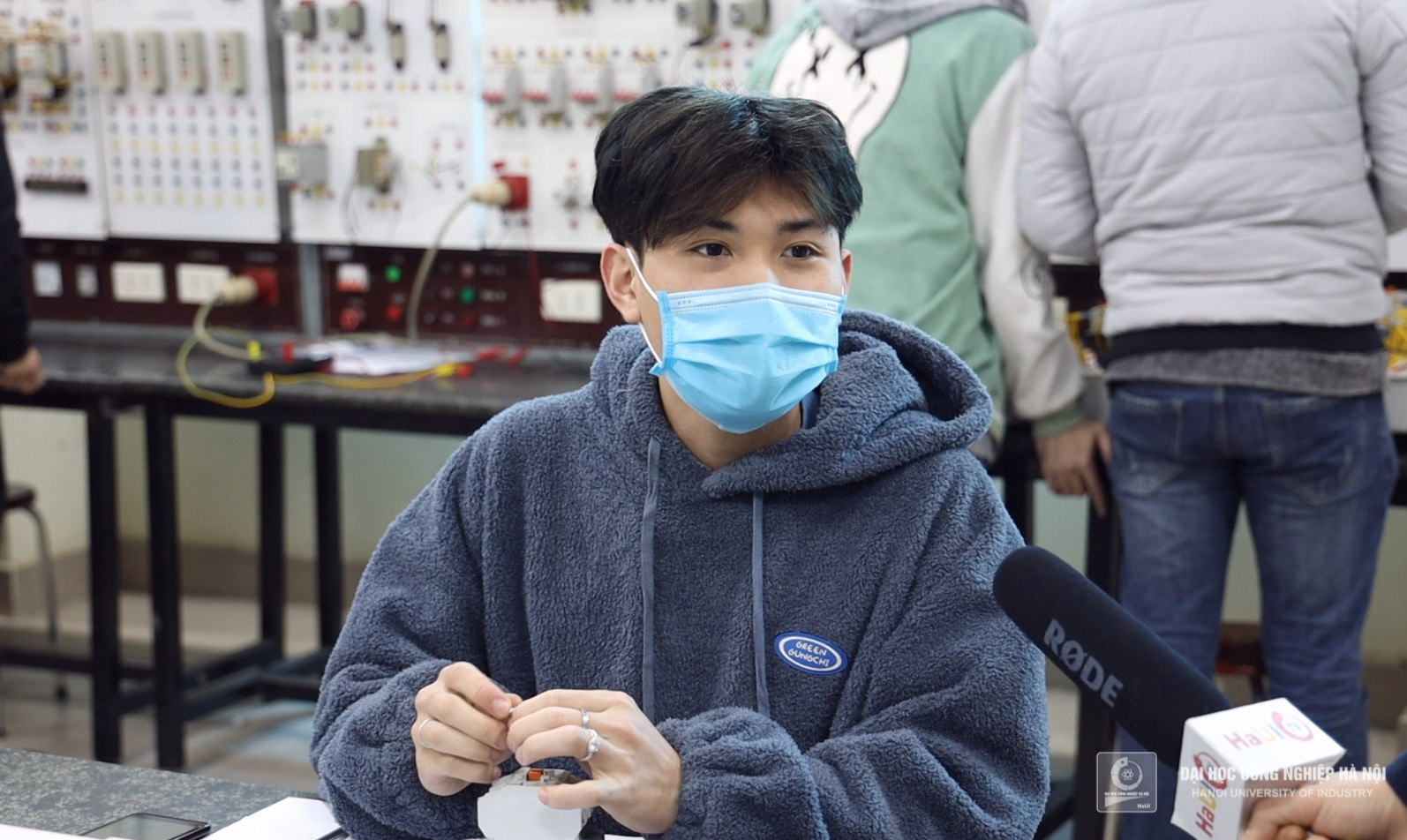 Hanoi University of Industry has reopened; although it has not been as vibrant as before, the atmosphere is warmer when teachers and students return to school. After a long time of online learning, staff, lecturers and students of some Faculties and units of Hanoi University of Industry have come to the school to get face-to-face learning. There is a mixed feelings of excitement, joy, and confusion among everyone in the days of return.