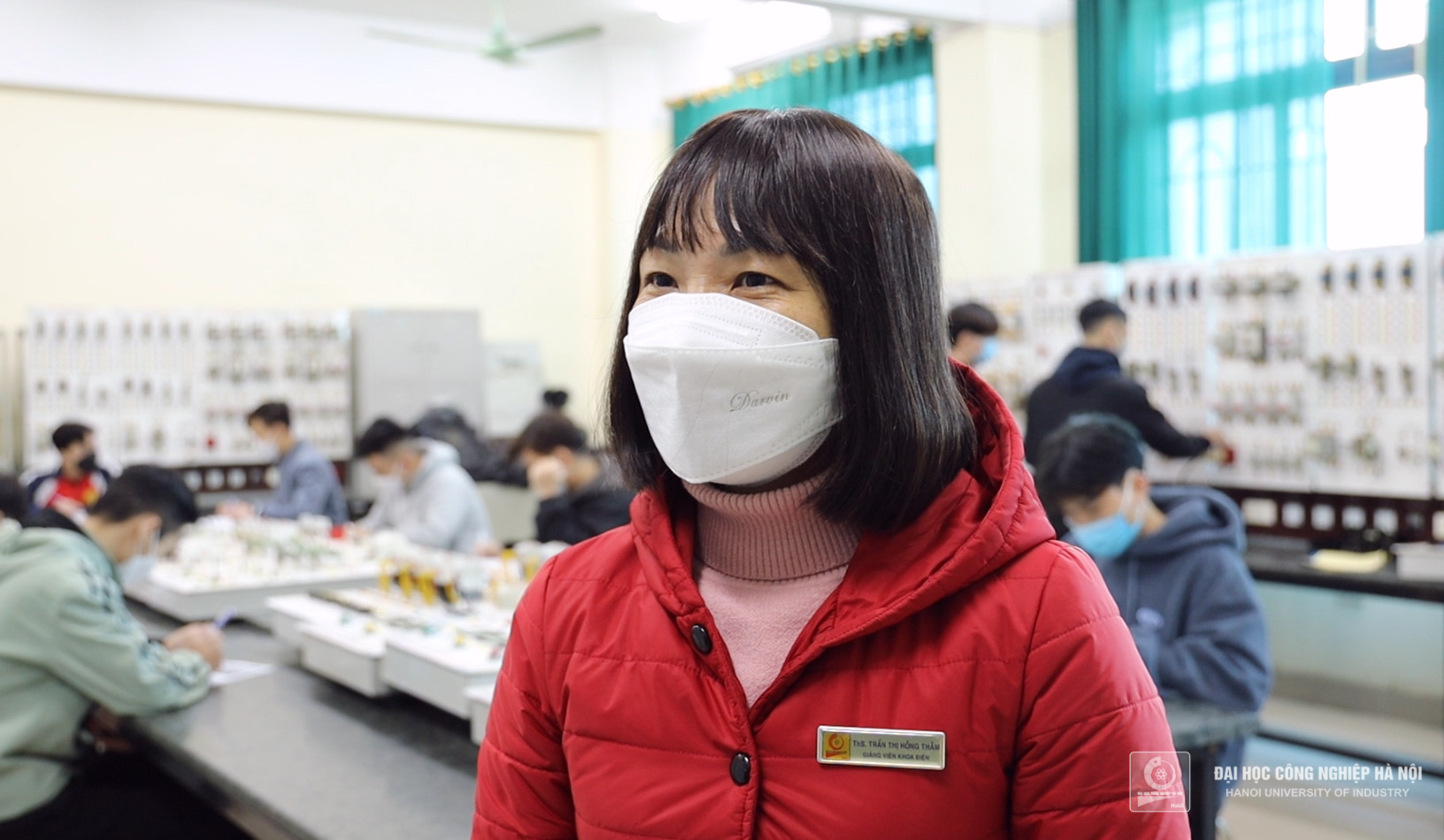 Ms. Hong Tham - Lecturer of the Faculty of Electrical Engineering reminds students: I hope that all students will strictly follow the 5K message during class time to ensure a good health and study.