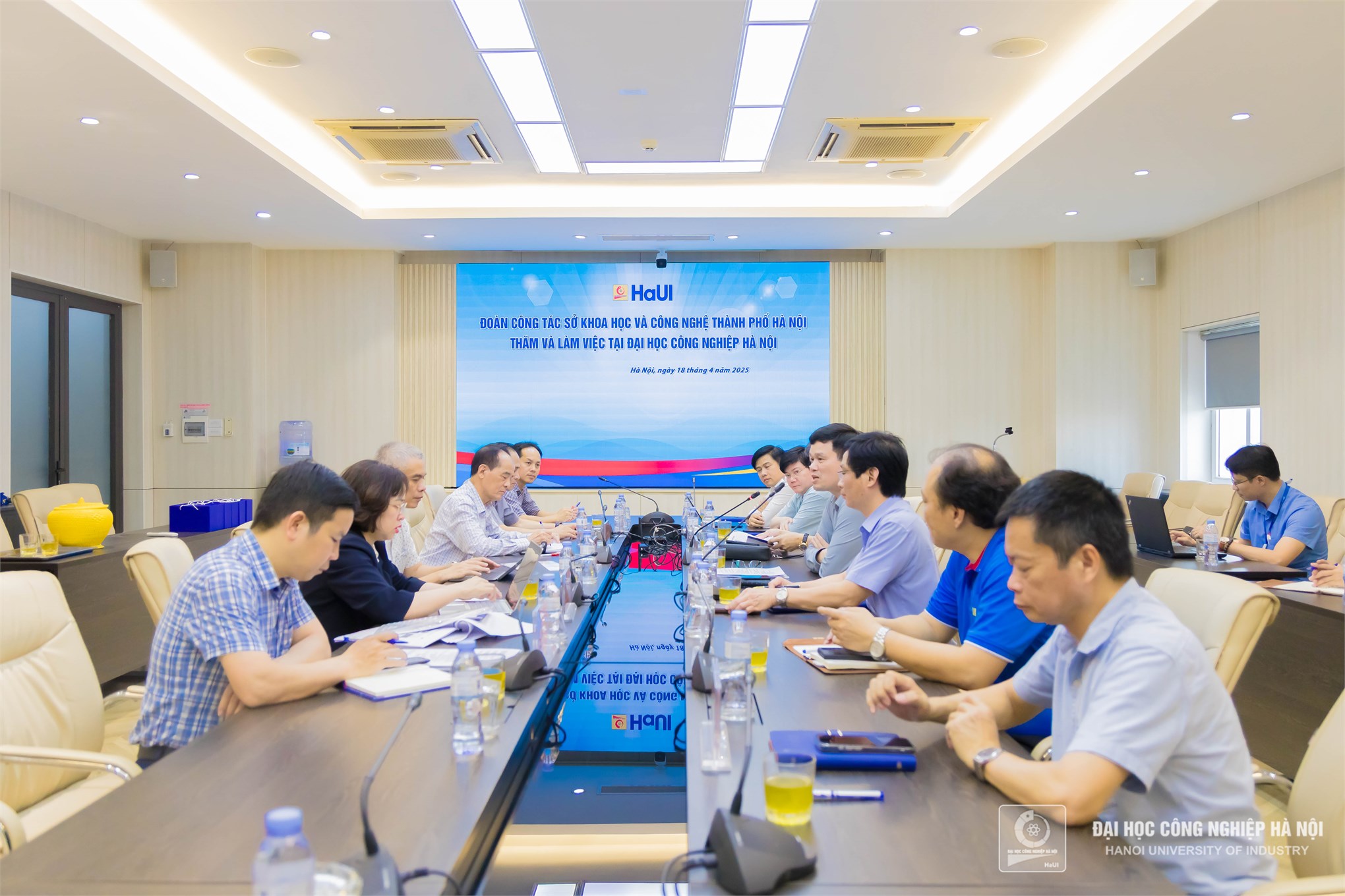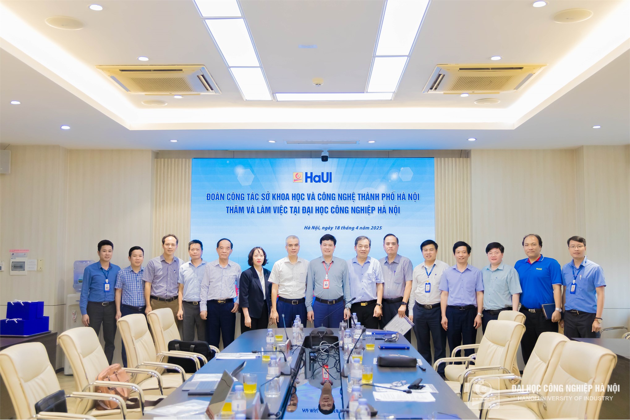 On April 18, Hanoi University of Industry (HaUI) welcomed a Hanoi City Department of Science and Technology delegation for a working session to foster strategic collaboration in scientific and technological development.