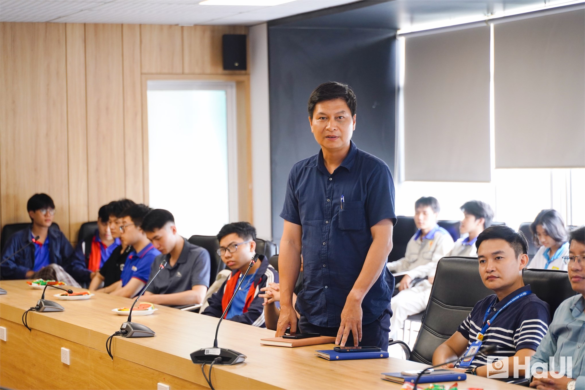 Speaking at the meeting, Assoc. Prof. Dr. Pham Van Dong, Vice Rector of the university, reflected on the history of active participation and the excellent achievements that generations of HaUI students have attained in the Robocon arena since 2003. Associate Professor Dr. Pham Van Dong emphasized: "Robocon is not merely a technology competition; it is an ideal environment for students to apply their learned knowledge to solve real-world engineering problems, refine teamwork skills, foster creative thinking, and cultivate the will to overcome challenges."