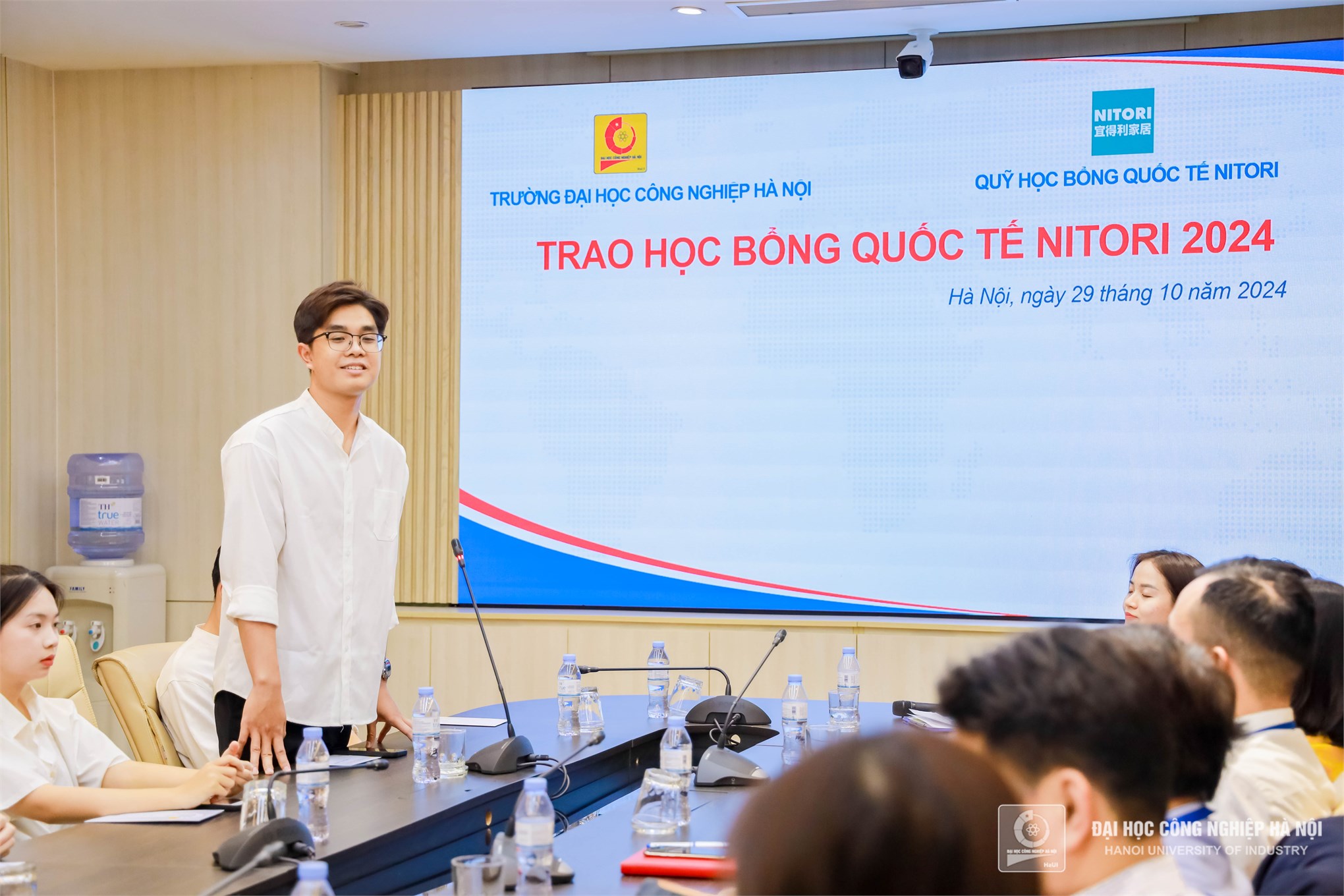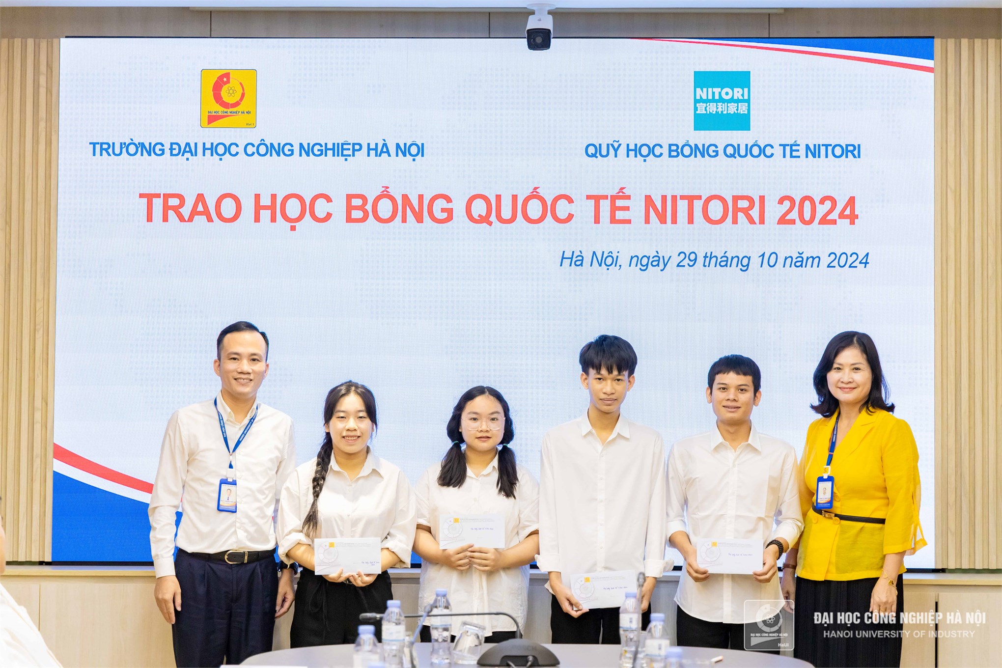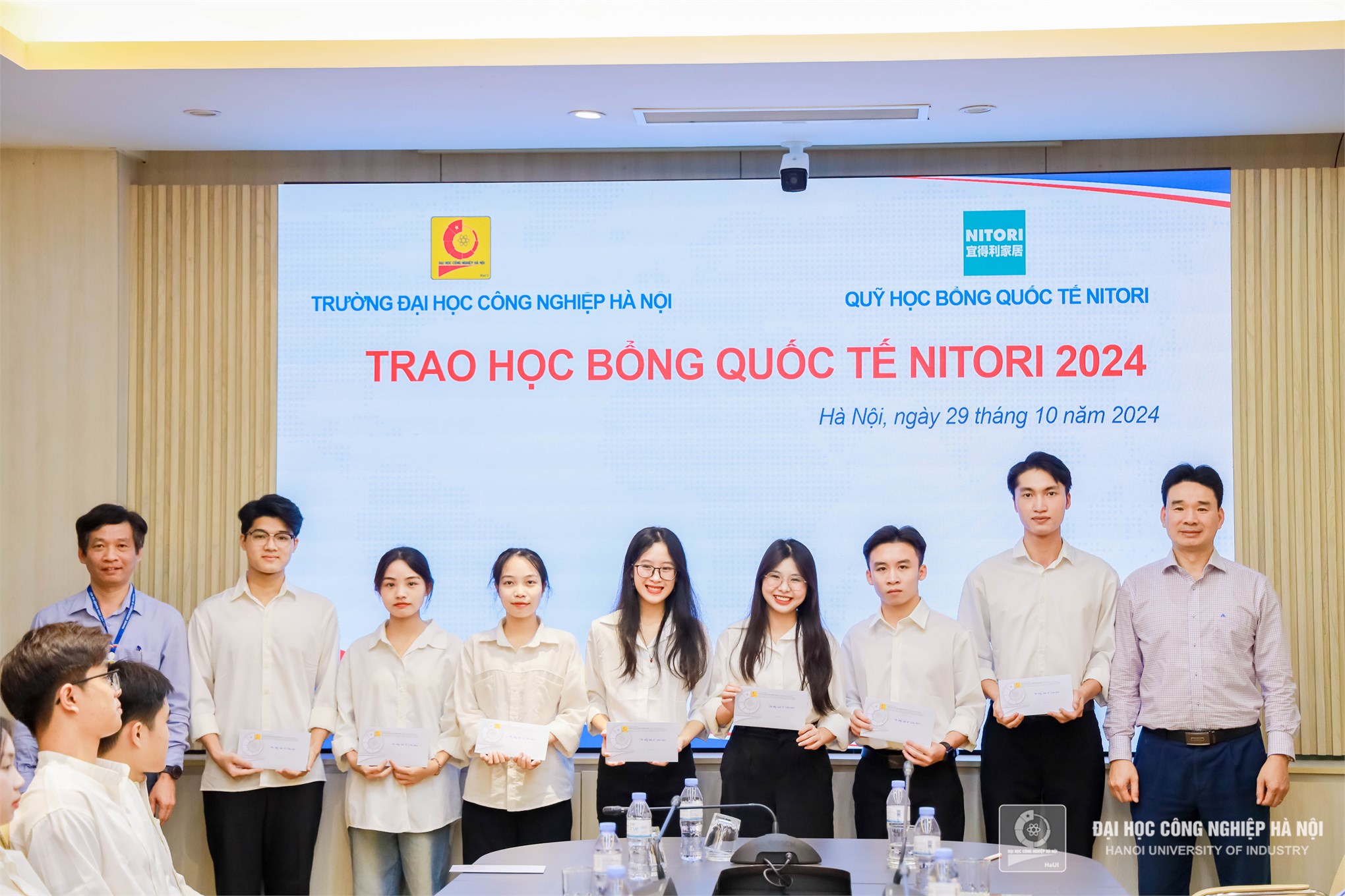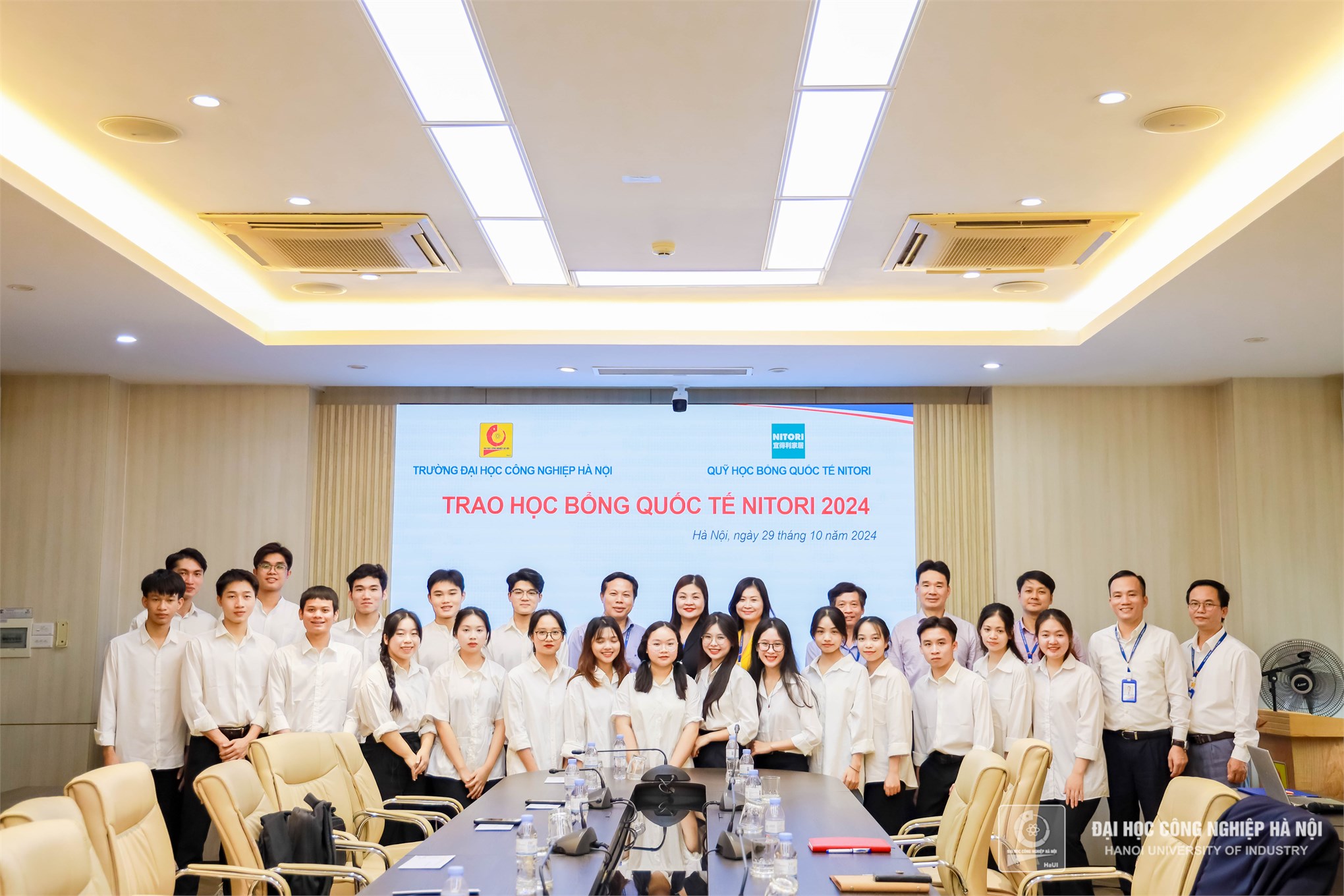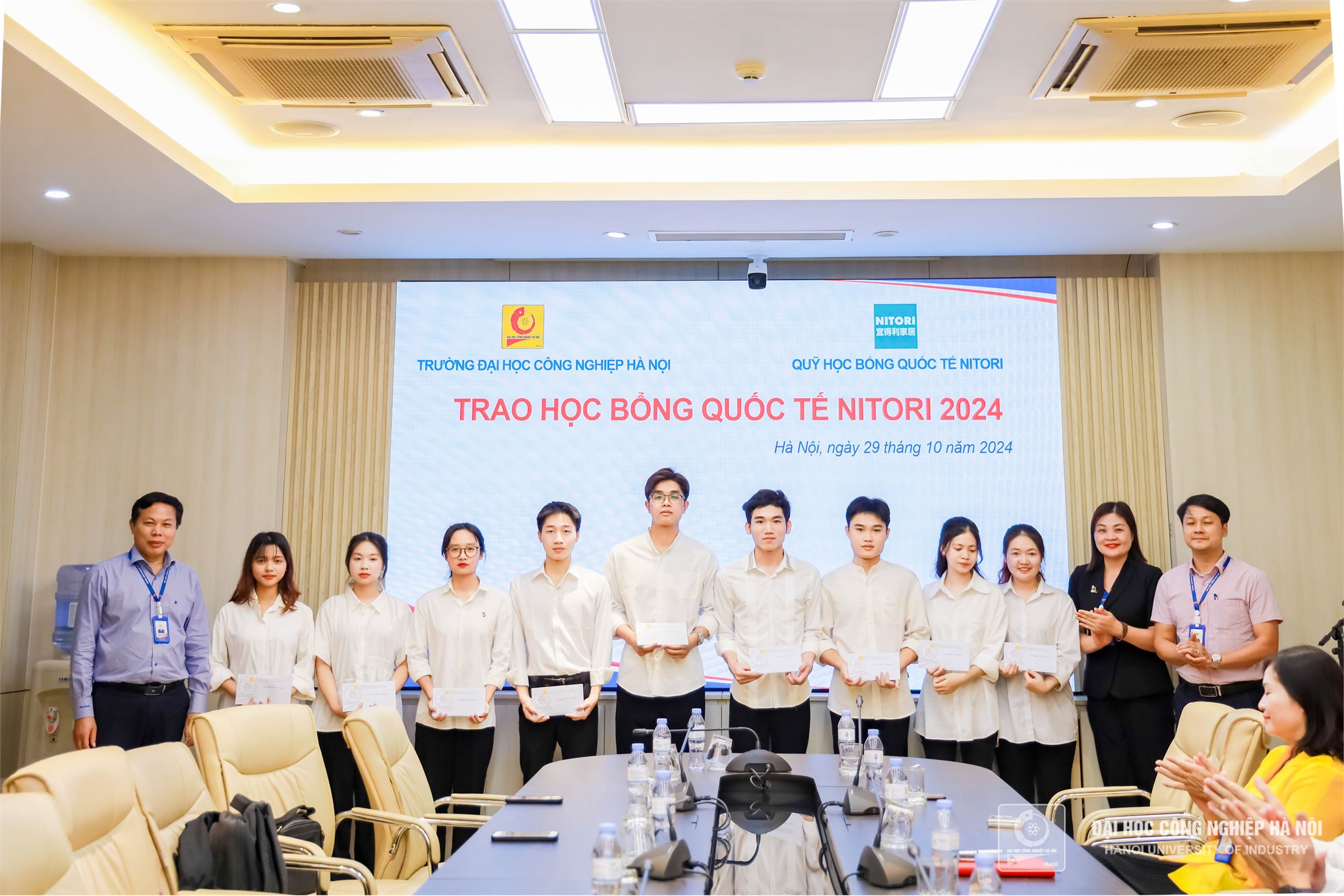 On October 29, 2024, Hanoi University of Industry (HaUI) held the Nitori International Scholarship Award Ceremony, celebrating the achievements of outstanding students from various faculties. The total scholarship value for this year amounted to 260 million VND, benefiting students from majors such as Mechanical Engineering, Automotive, Chemical Technology, Electrical Engineering, Electronics, Computer Engineering Technology, Mechatronic Engineering Technology, Business Administration, and Accounting.