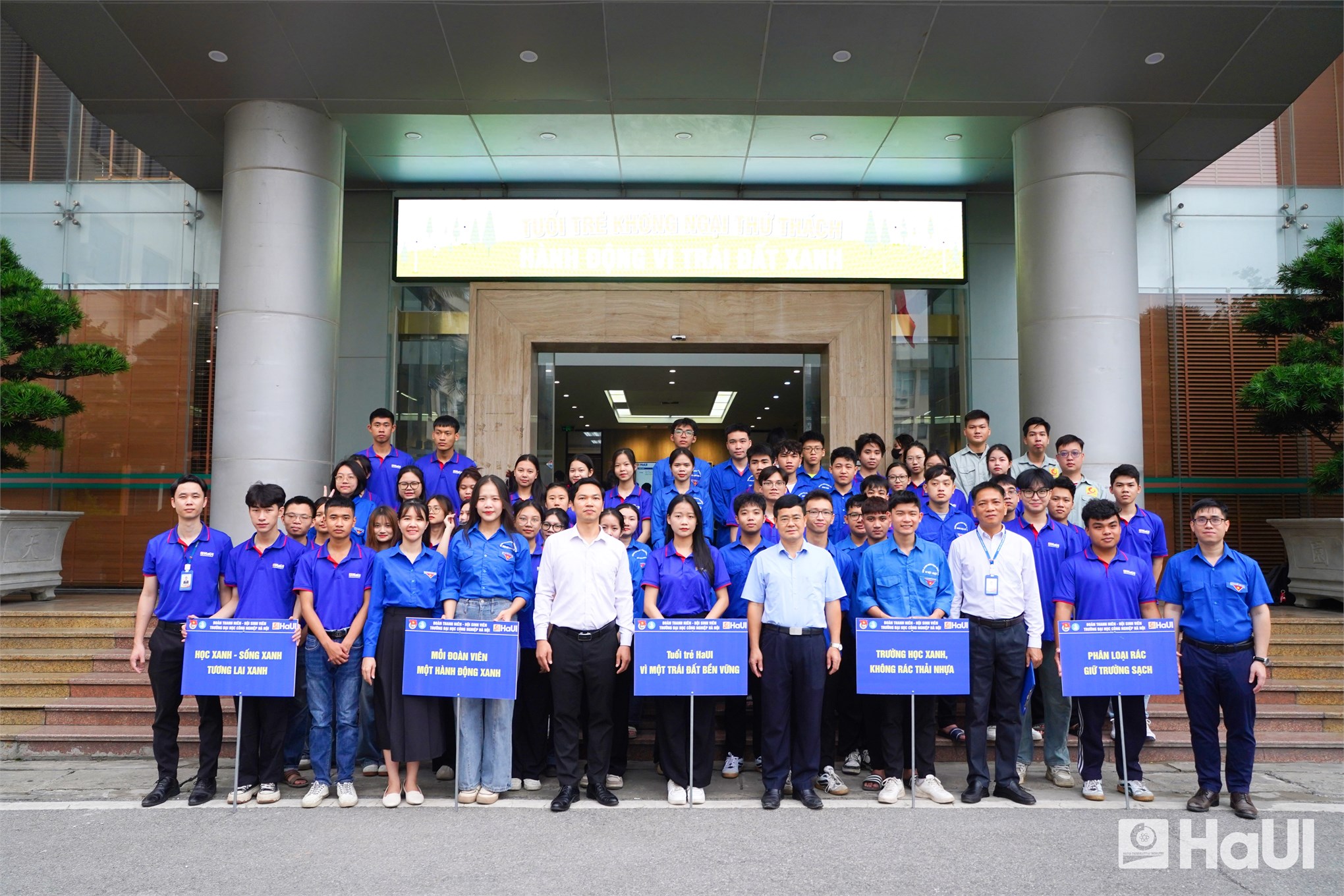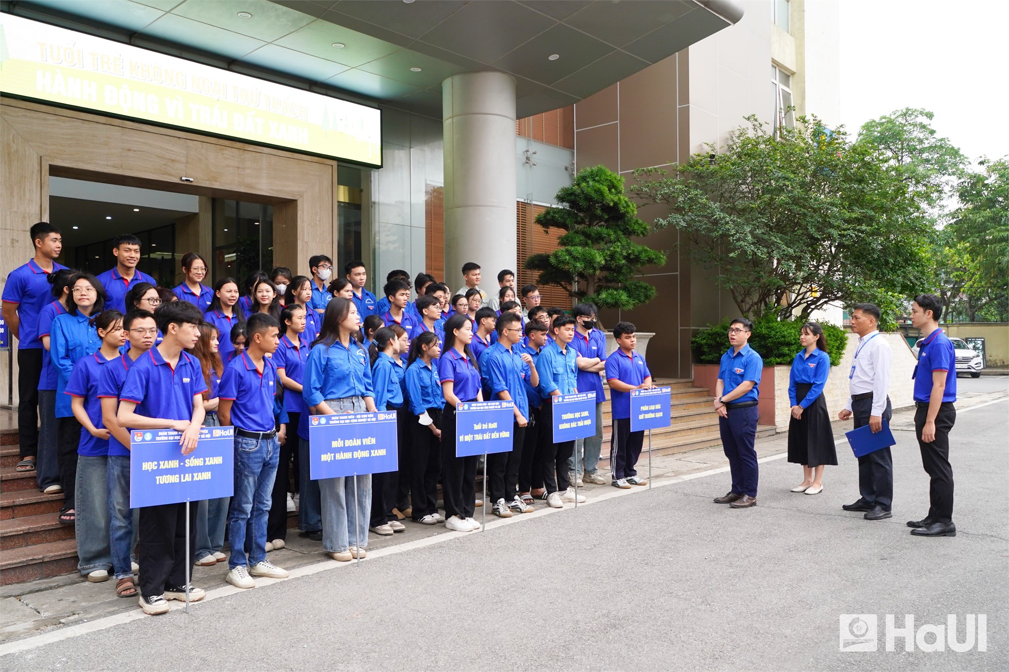 The launch event for HaUI's 'Beat Plastic Pollution' campaign saw the presence of key university figures, including Dr. Nguyen Van Thien, Vice Rector of HaUI; Mr. Do Minh Hien, Secretary of the Youth Union; and Mr. Vu Thai Giang, Deputy Head of the Asset Management Department. Their participation underscored HaUI's unified commitment to environmental sustainability.