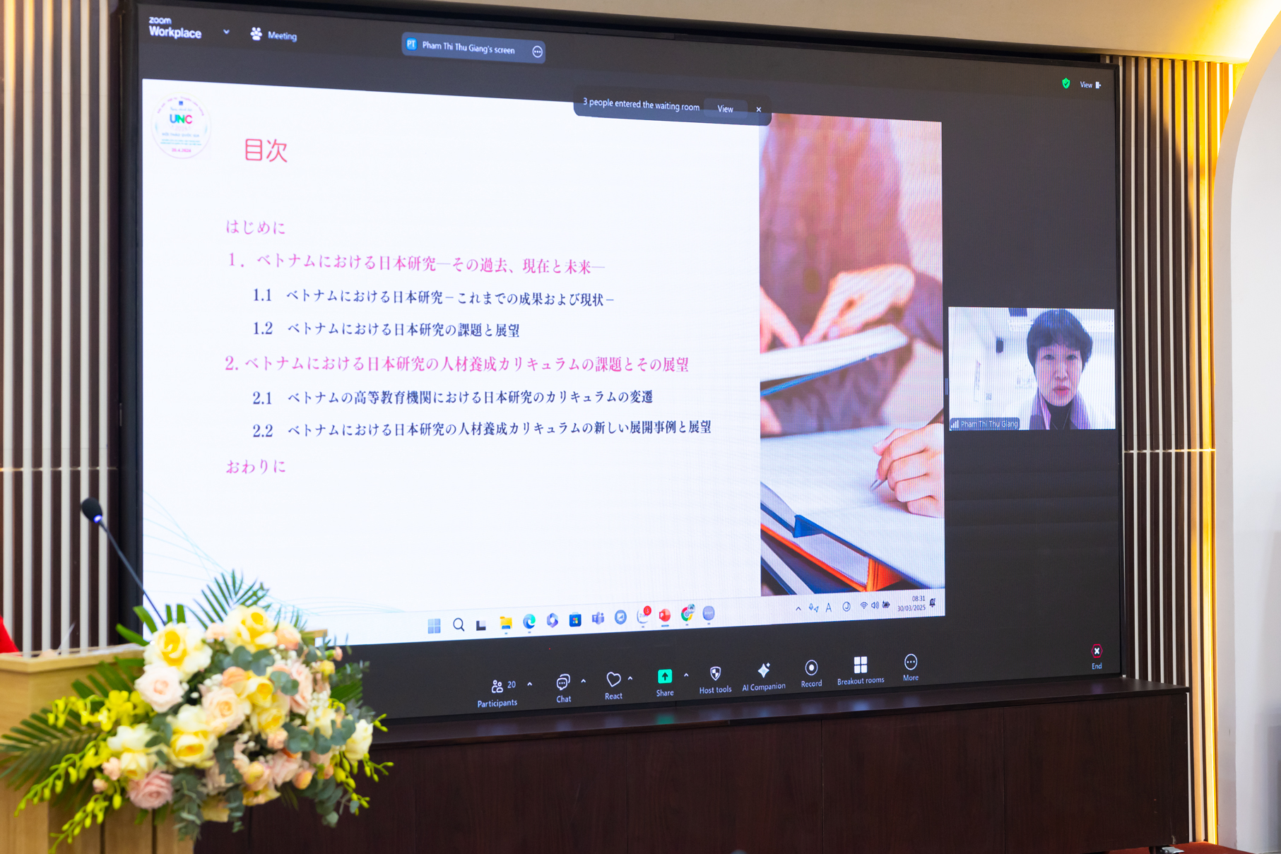 Assoc. Prof. Dr. Pham Thi Thu Giang delivered a report on the current status and prospects of Japan Studies research in Vietnam, providing an in-depth overview of its development trends, academic contributions, and interdisciplinary potential.