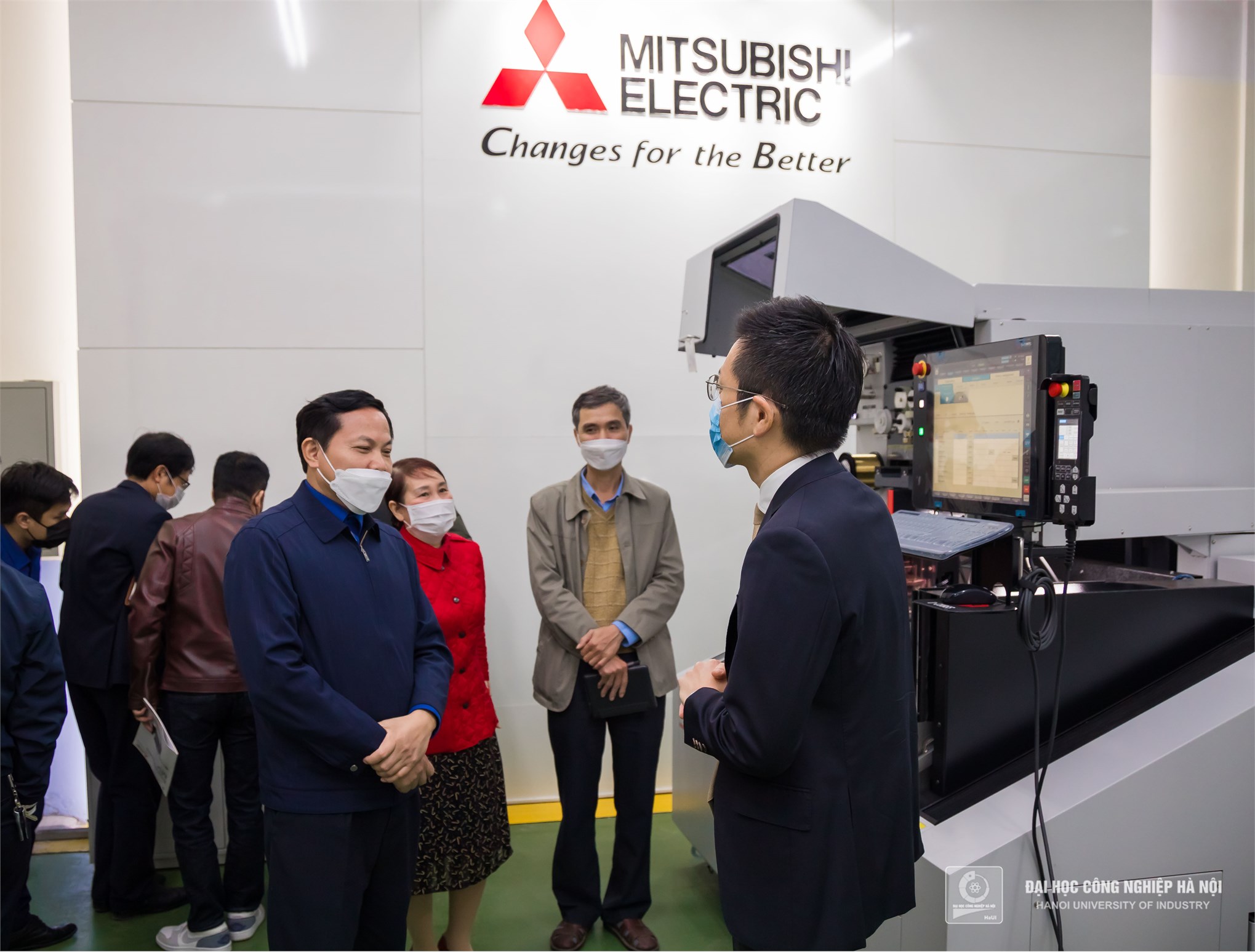 Attending the Handover ceremony, representing Mitsubishi Electric Vietnam, there were Mr. Umeto - General Director, Mr. Shin Lida - Technical Director, and Mr. Yoichi Matsufuji - Deputy Technical Director. On HaUI's side, there were r. Bui Thi Ngan - Vice-Rector, representatives of leaders of units: Vietnam Japan Center, Center for Mechanical Engineering, HaUI - Foxconn Center for Technical Training, Center for Enterprise Partnership, Faculty of Mechanical Engineering.
