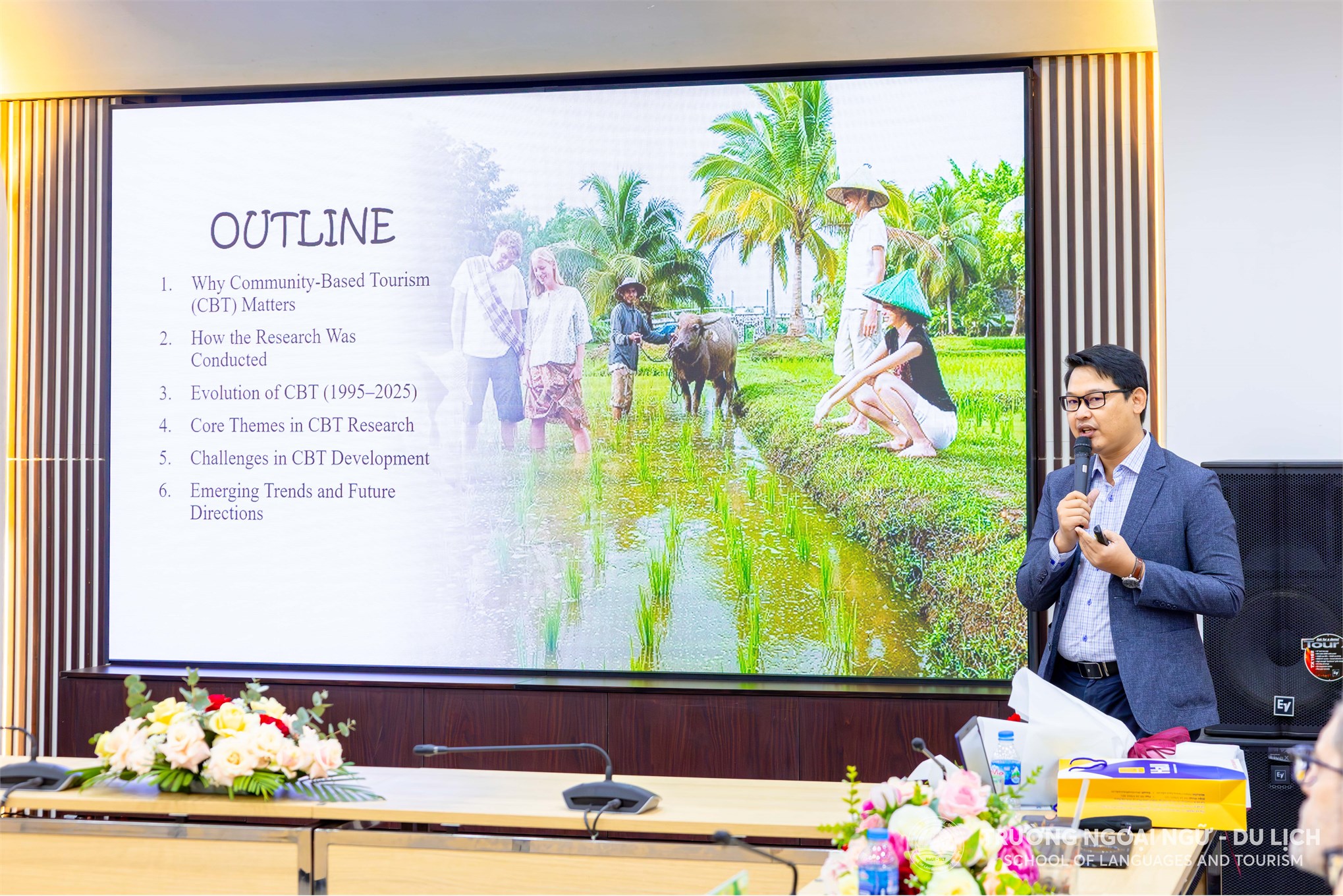 Assoc. Prof. Dr. Quang Dai Tuyen, Director of the Doctoral Program in Tourism at Nguyen Tat Thanh University, presented a systematic bibliometric analysis of three decades of research on Community-Based Tourism (CBT). His study highlighted a sharp rise in CBT-related publications, especially after 2015, reflecting its increasing importance in achieving global sustainable development goals. Notably, Asia and Africa - exemplified by Indonesia and South Africa - are leading contributors in this field.