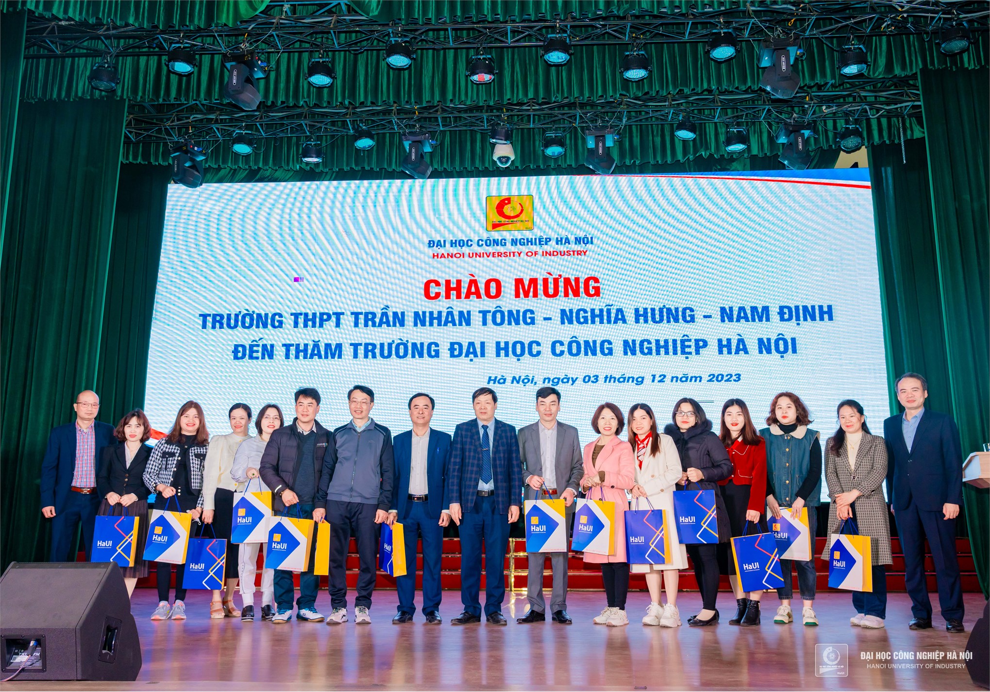 As part of the enrollment activities, on Sunday, December 3rd, more than 400 students from Tran Nhan Tong High School (Nghia Hung, Nam Dinh) paid a visit to Hanoi University of Industry (HaUI).