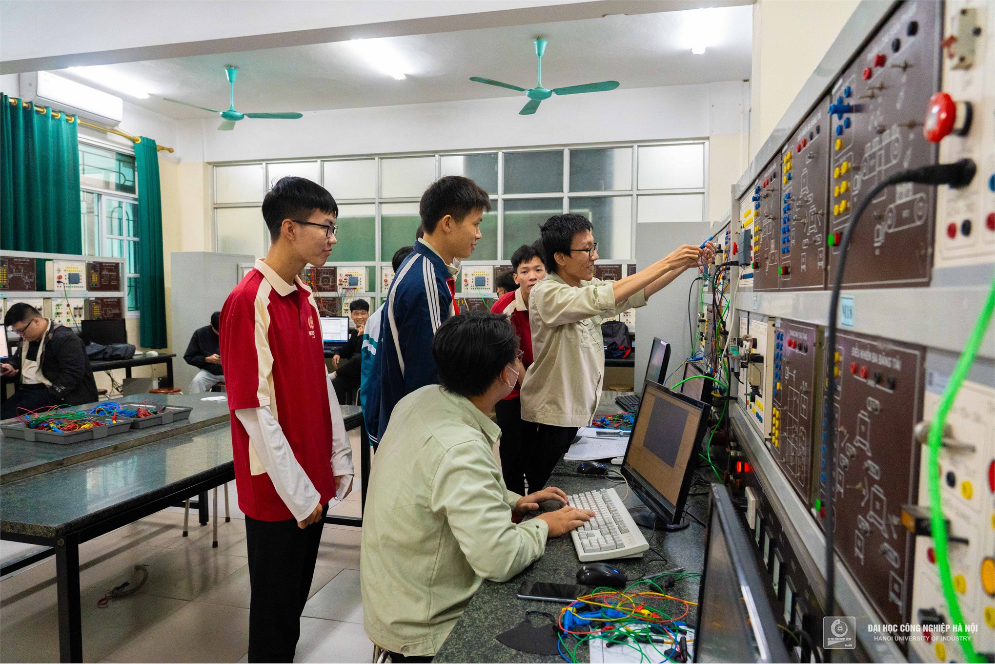 The teacher and students of class 12A2 from Tran Nhan Tong High School are currently exploring the field and profession offered by Faculty of Electrical Engineering