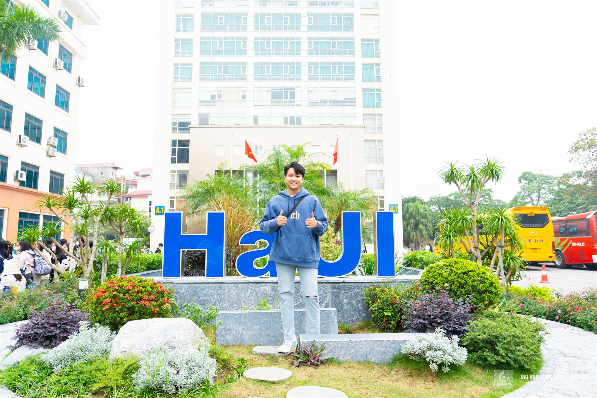 The group of students from class 12A3 was impressed when visiting Hanoi University of Industry for the first time. HaUI has a spacious campus, modern facilities, and very attentive and caring volunteer students