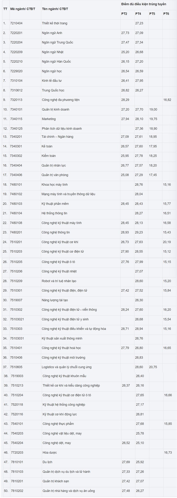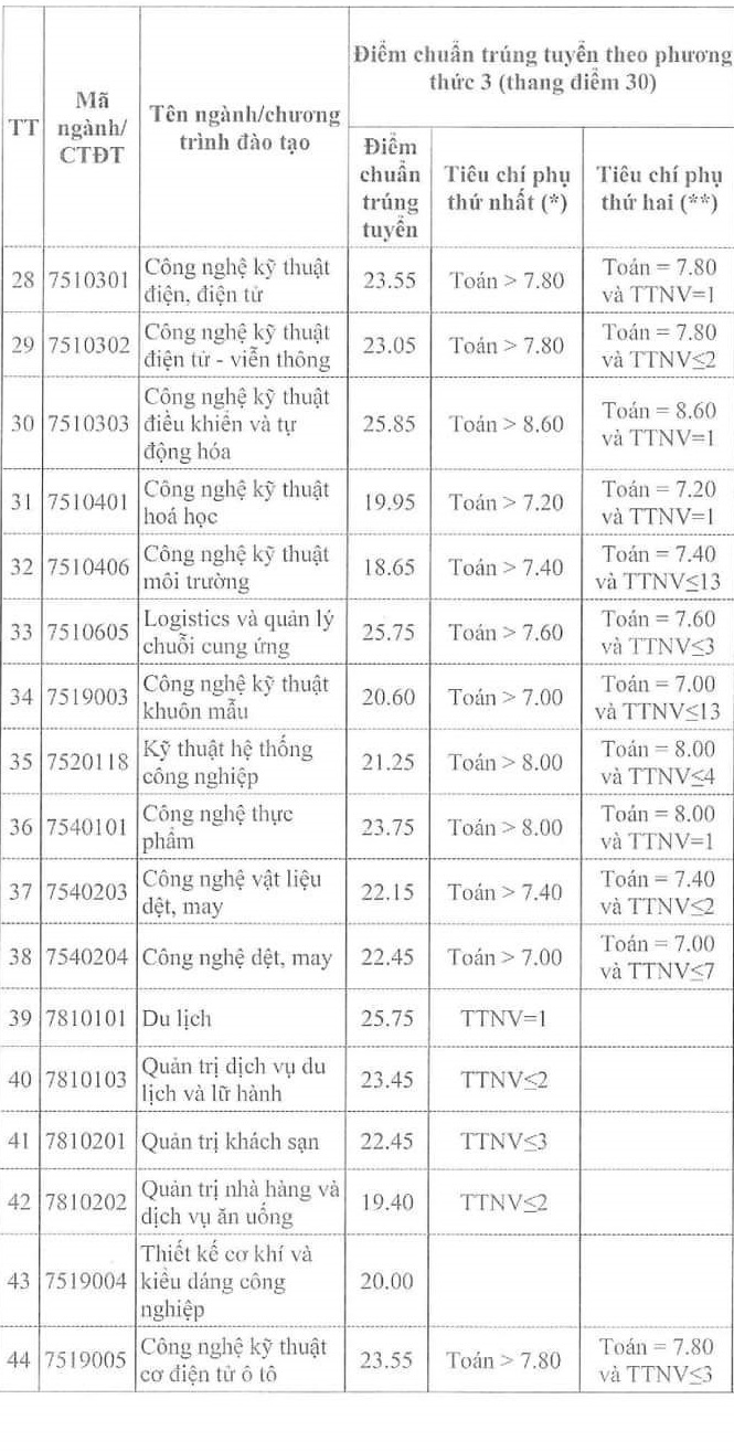 26 | 7520118 | Kỹ thuật hệ thống công nghiệp | 23.80 | Toán > 8.8 | Toán =8.8 và NV≤ 14 |