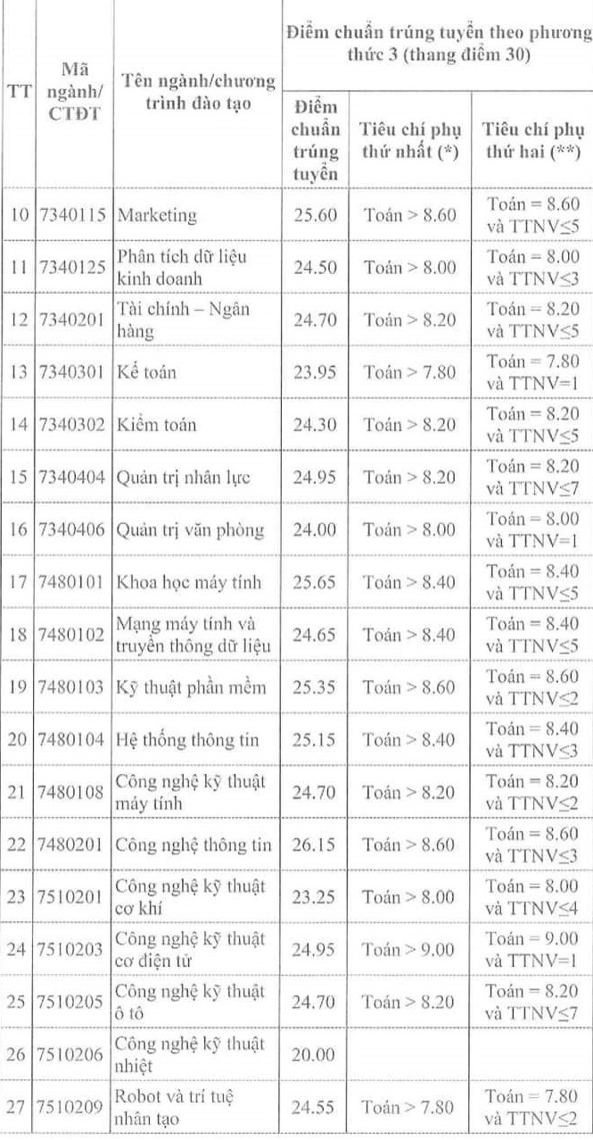 2 | 7340115 | Marketing | 26.10 | Toán > 8.6 | Toán = 8.6 và NV≤ 2 |