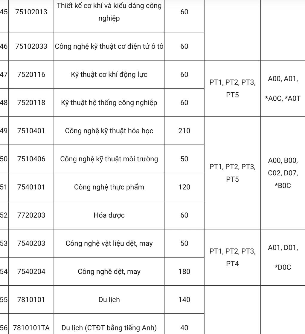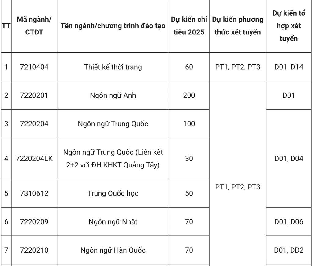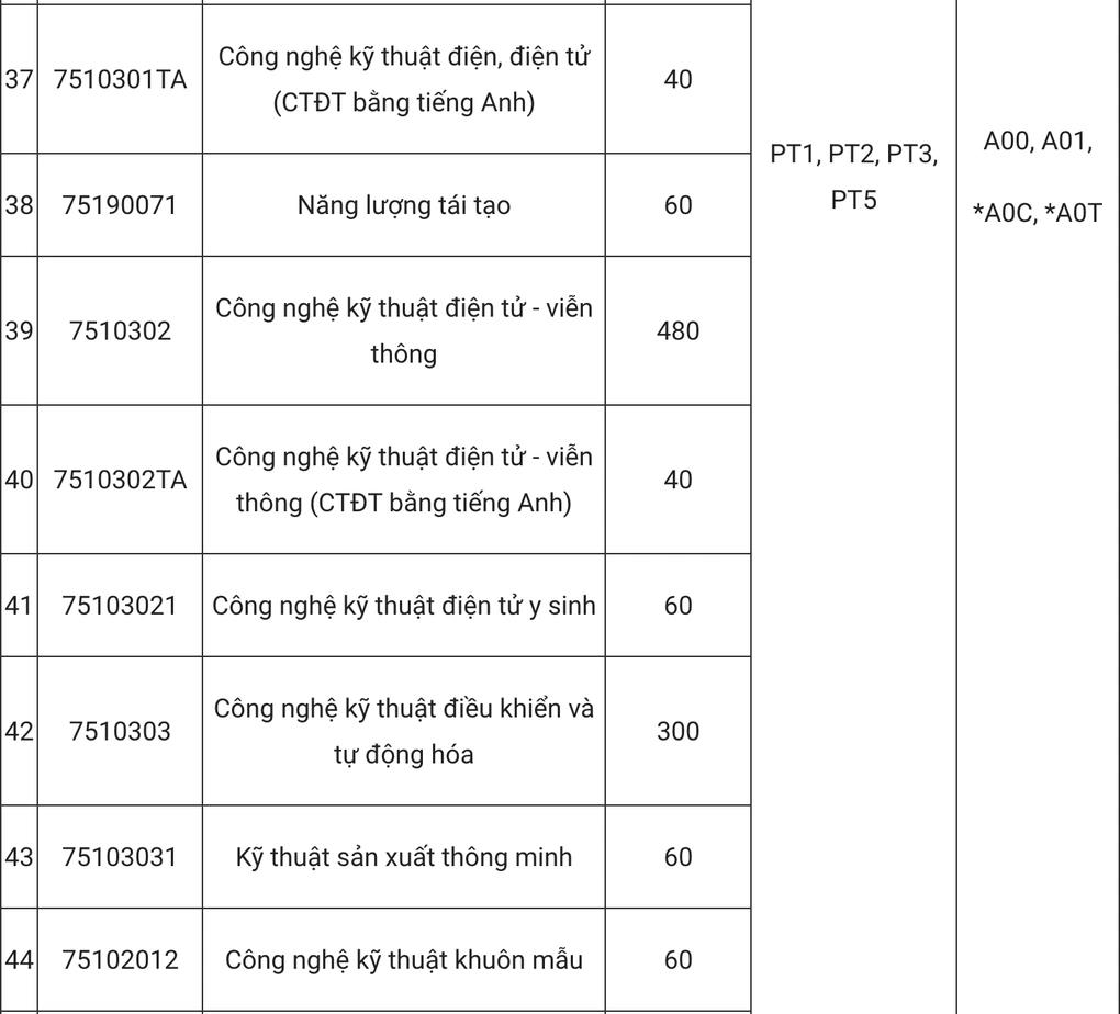Cũng từ năm 2025, nhà trường dự kiến xét tuyển các tổ hợp mới như A0C (toán, vật lý, công nghệ), A0T (toán, vật lý, tin học), B0C (toán, hóa học, công nghệ), D0C (toán, tiếng Anh, công nghệ), D0G (toán, tiếng Anh, giáo dục kinh tế và pháp luật).