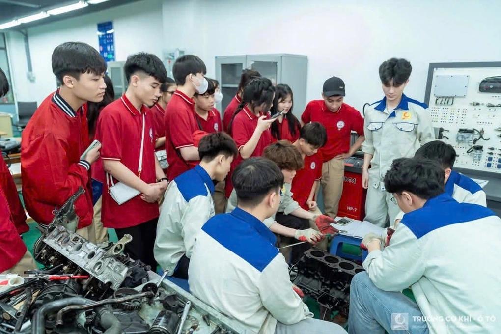 Học sinh Trường THPT Lạc Long Quân trải nghiệm thực tế tại Đại học Công nghiệp Hà Nội (Ảnh: Nhà trường cung cấp).