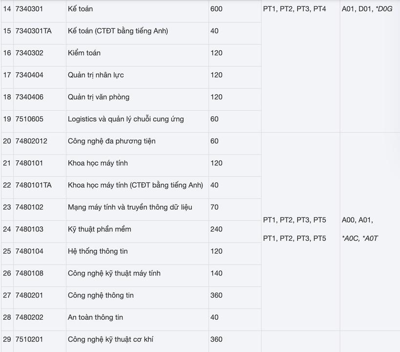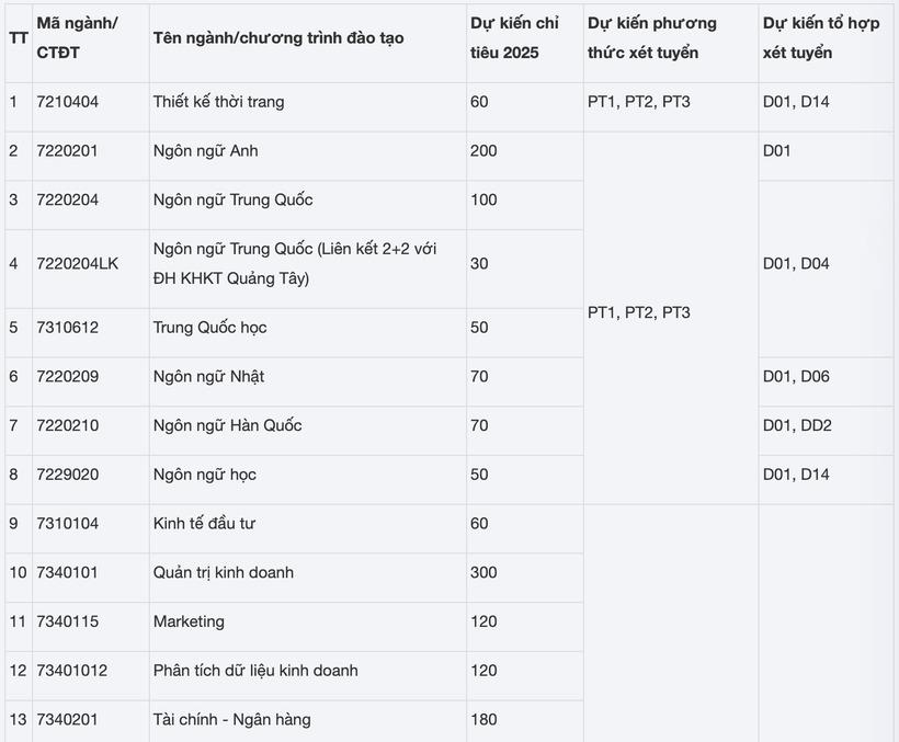 - Phương thức 3 (PT3): Xét tuyển dựa trên kết quả thi tốt nghiệp THPT năm 2025 (chỉ tiêu dự kiến 80%).