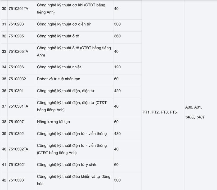 - Phương thức 5 (PT5): Xét tuyển dựa trên kết quả thi đánh giá tư duy năm 2025 do ĐH Bách khoa Hà Nội tổ chức kết hợp với điểm tổng kết học bạ cả năm lớp 10,11,12 của 3 môn theo tổ hợp xét tuyển (chỉ tiêu dự kiến 5%).