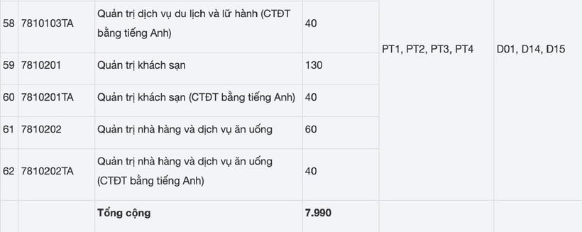 Chỉ tiêu, phương thức và tổ hợp xét tuyển dự kiến của từng ngành như sau: