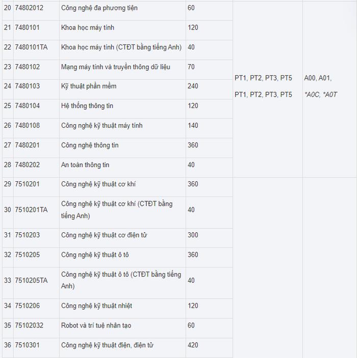 Thông tin chi tiết sẽ được cập nhật trên Cổng thông tin tuyển sinh của nhà trường trước ngày 15/3/2025.