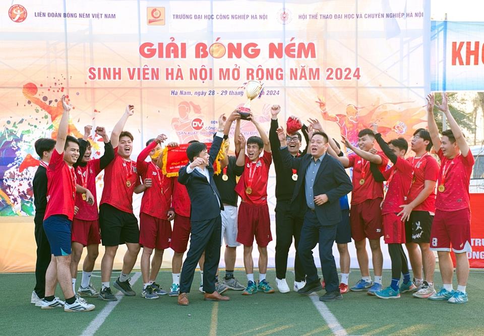 Đội nữ trường Đại học Công nghiệp Hà Nội đã đăng quang thuyết phục với 4 trận toàn thắng giải bóng ném sinh viên Hà Nội mở rộng năm 2024.