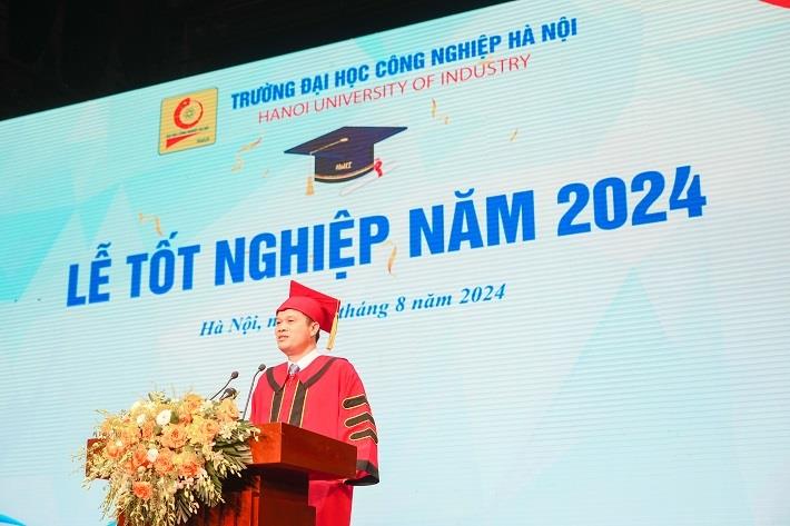 Lễ tốt nghiệp và trao bằng Tiến sĩ, Thạc sĩ, Kĩ sư, Cử nhân năm 2024 không chỉ là dấu mốc đánh dấu chặng đường dài nỗ lực học tập, nghiên cứu và rèn luyện, mà hơn thế nữa, các bạn đã sở hữu tấm bằng của Đại học Công nghiệp Hà Nội – một cơ sở giáo dục đại học đa ngành, đa lĩnh vực, nằm trong top những trường đại học kỹ thuật hàng đầu của cả nước, để tự tin bước bước tiếp trên những hành trình mới...".