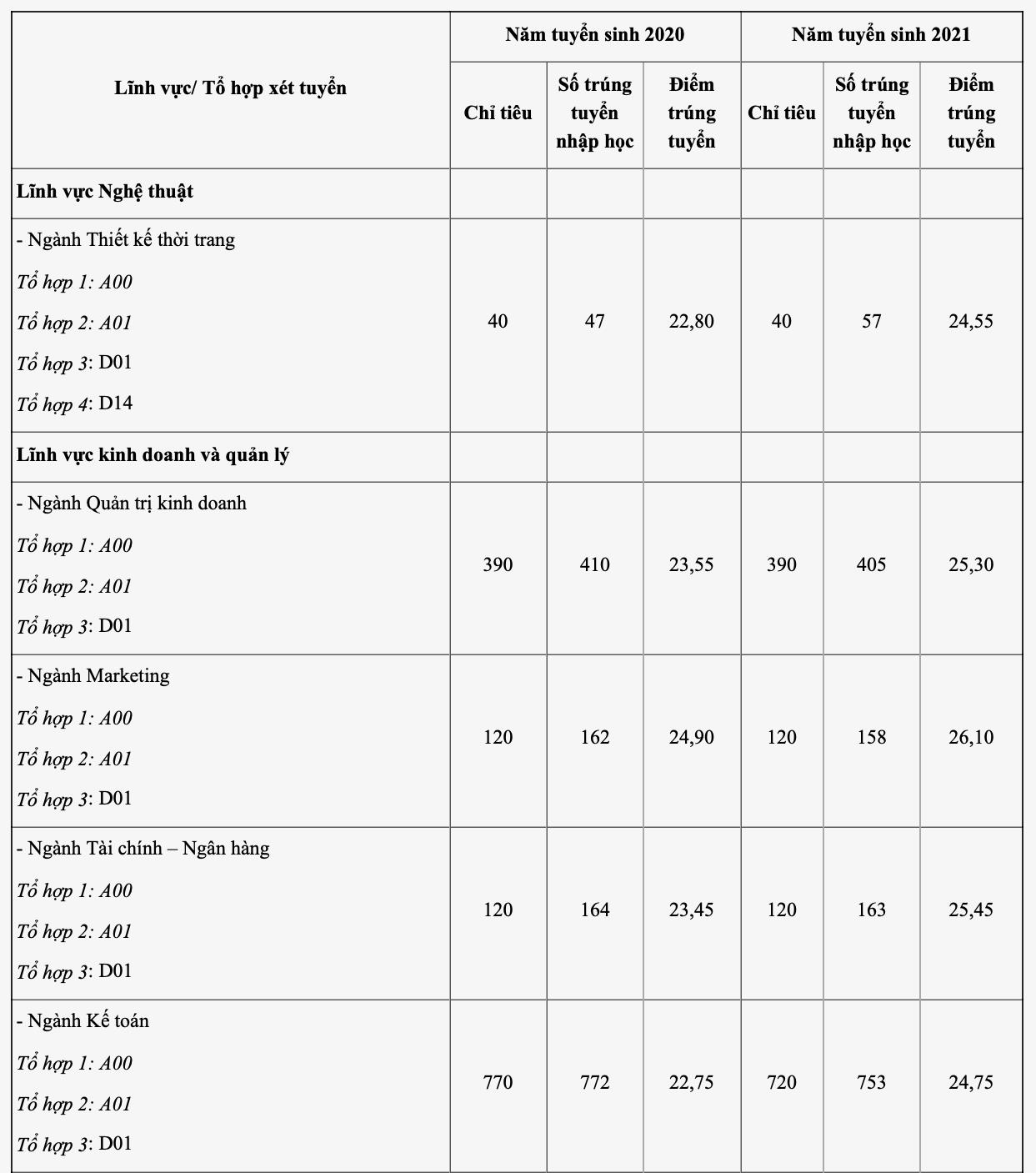 Điểm chuẩn trúng tuyển Trường Đại học Công nghiệp Hà Nội năm 2020 - 2021