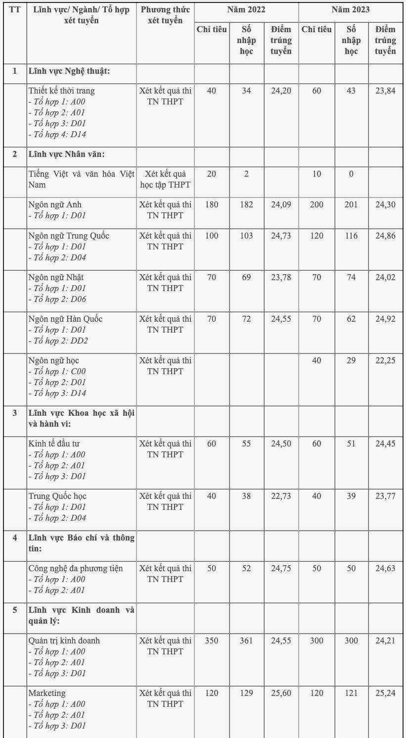 Điểm chuẩn trúng tuyển Trường Đại học Công nghiệp Hà Nội năm 2022 - 2023