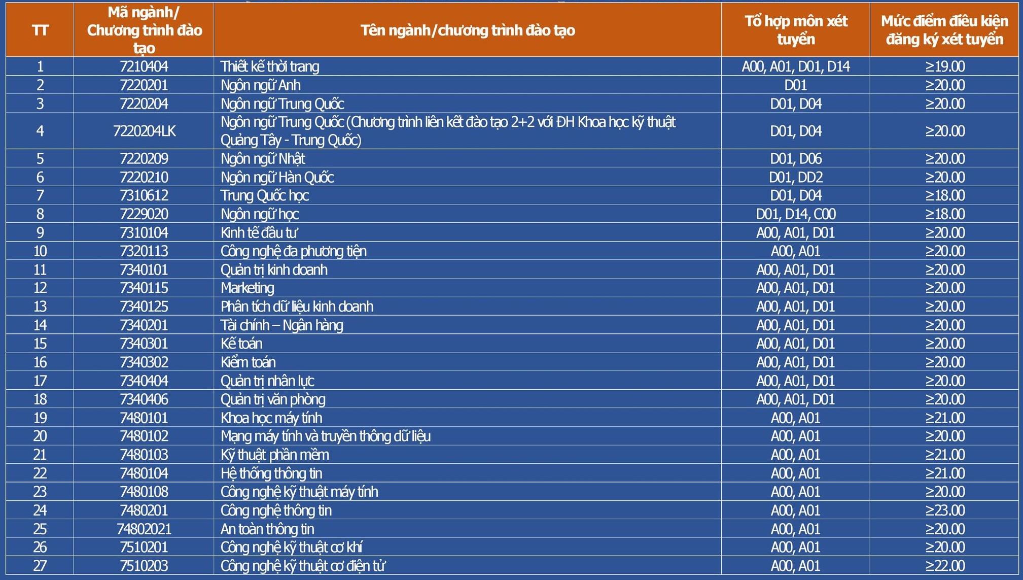 Điểm điều kiện đăng ký xét tuyển theo phương thức xét kết quả thi tốt nghiệp THPT của Trường Đại học Công nghiệp Hà Nội