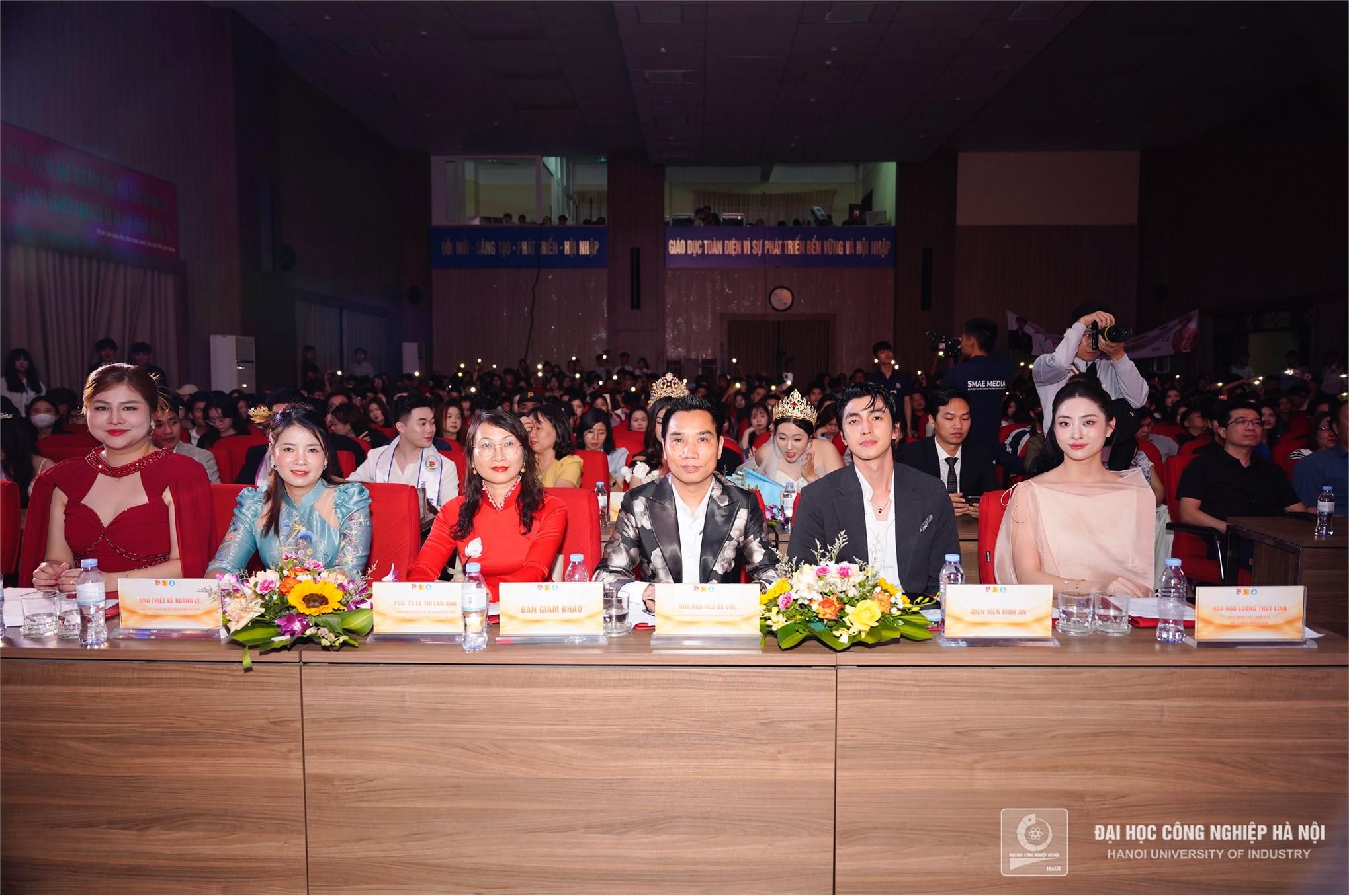 PGS.TS. Lê Hồng Quân – Bí thư Đảng ủy, Chủ tịch Hội đồng trường, TS. Nguyễn Văn Thiện - Phó Bí thư Thường trực Đảng ủy, Phó hiệu trưởng nhà trường, Hoa Hậu Lương Thùy Linh - Miss World Việt Nam 2019 và Diễn viên Bình An - Cựu sinh viên nhà trường trao giải Hoa khôi cho thí sinh Đoàn Thị Hương - Trường Ngoại ngữ - Du lịch và giải Nam vương cho thí sinh Lê Gia Bảo - Trường Điện - Điện tử