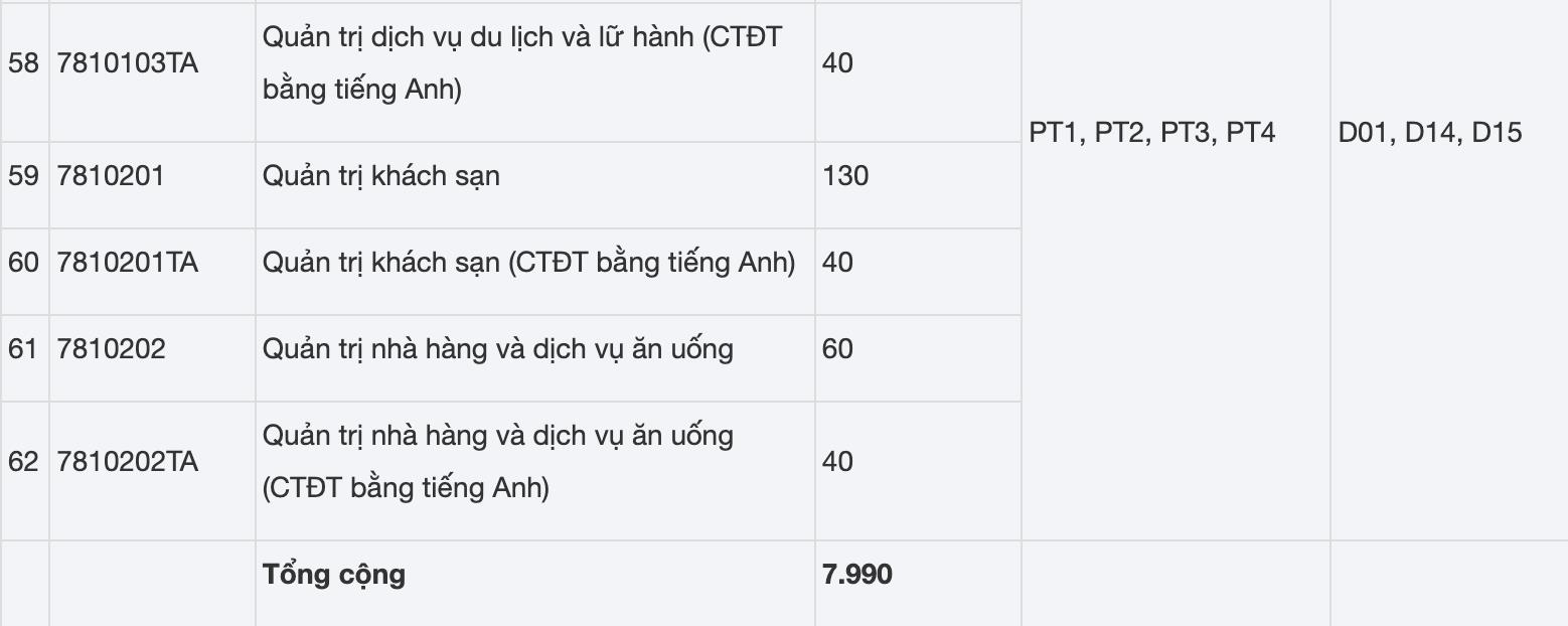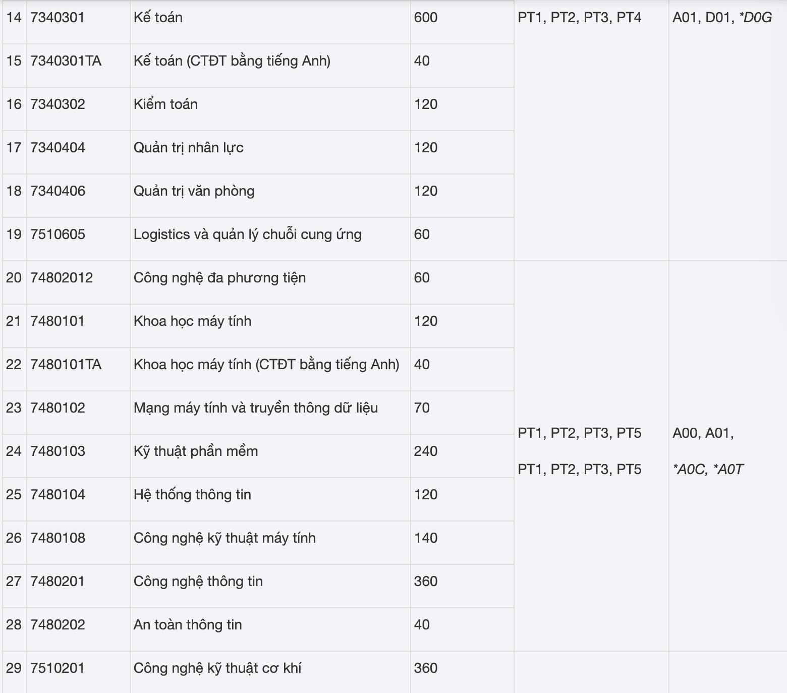 Chỉ tiêu, phương thức và tổ hợp xét tuyển dự kiến của từng ngành như sau: