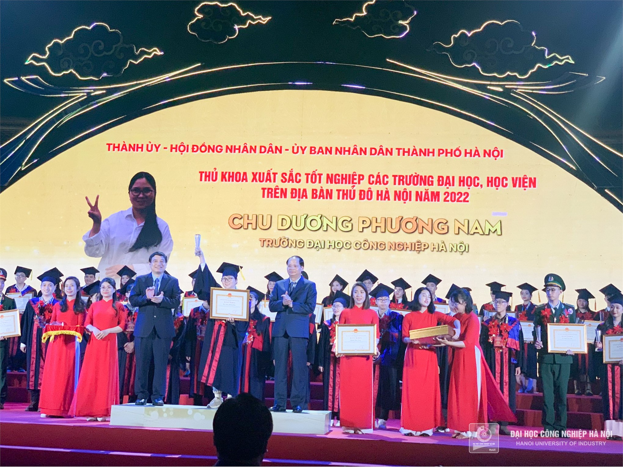 Chu Dương Phương Nam - Thủ khoa tốt nghiệp ngành Khoa học máy tính và Trương Thị Thu Trà - Thủ khoa tốt nghiệp ngành Kiểm toán của Đại học Công nghiệp Hà Nội là 2 trong số 98 thủ khoa tốt nghiệp xuất sắc các trường đại học, học viện năm 2022 được Thành ủy - HĐND - UBND TP.Hà Nội tuyên dương.