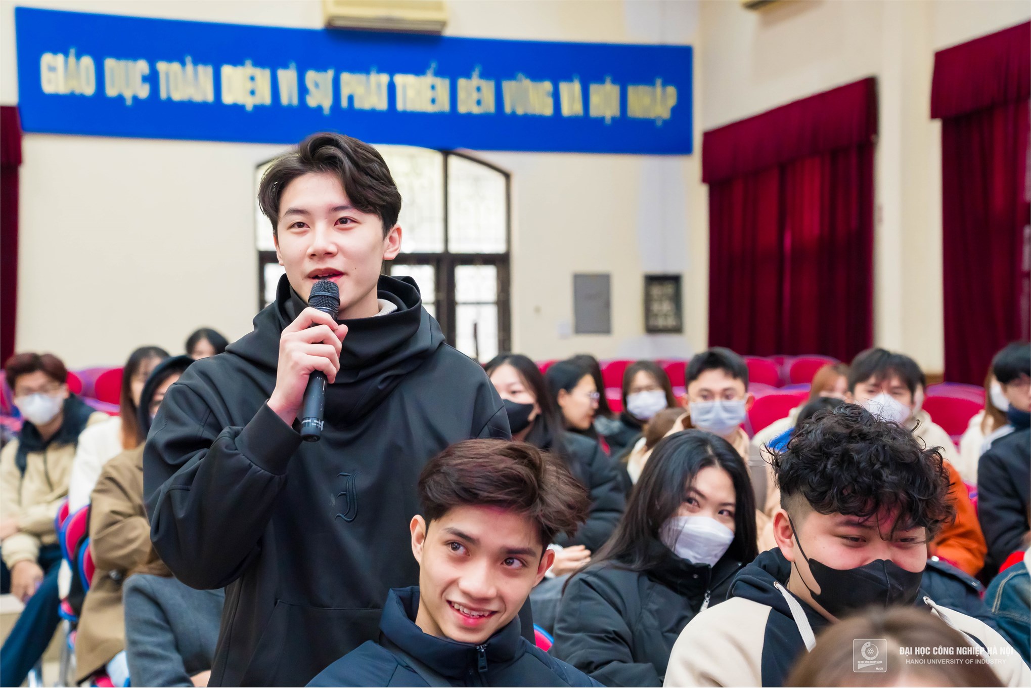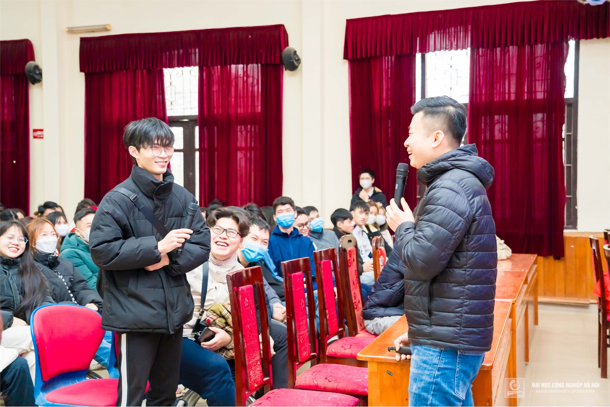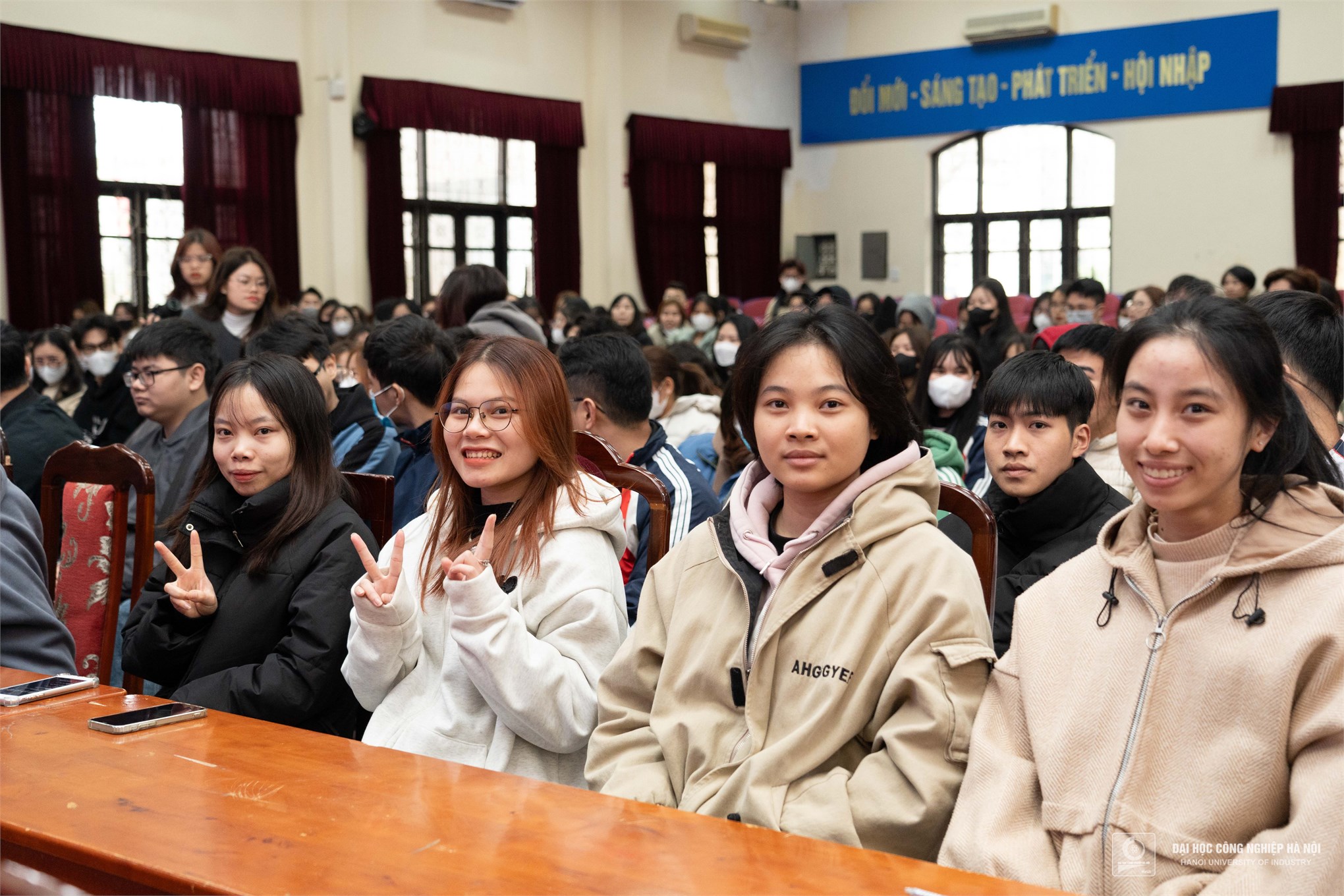 Sinh viên Khoa Công nghệ Hóa, Đại học Công nghiệp Hà Nội chăm chú dõi theo và giao lưu với diễn giả. Chắc chắn rằng, sau buổi tọa đàm hôm nay, các bạn sinh viên sẽ có thêm thật nhiều kiến thức, bỏ túi nhiều kinh nghiệm để tự mình có thể tạo nên bản sắc riêng, gây ấn tượng và khẳng định bản thân trước nhà tuyển dụng.