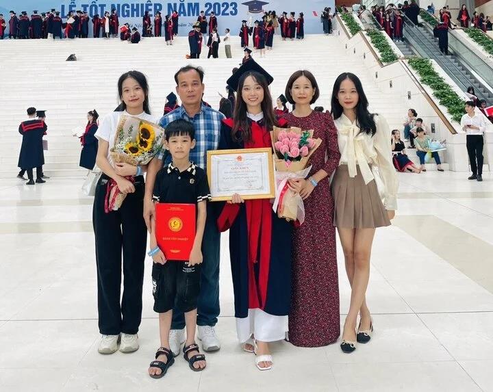Nguyễn Thị Ánh Nguyệt nhận bằng tốt nghiệp cùng gia đình. (Ảnh NVCC)