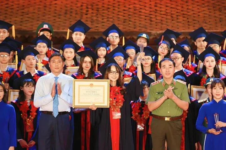 Nguyễn Thị Ánh Nguyện cùng 95 thủ khoa trong buổi lễ vinh danh các thủ khoa xuất sắc năm 2023 của Thành phố Hà Nội. (Ảnh NVCC)