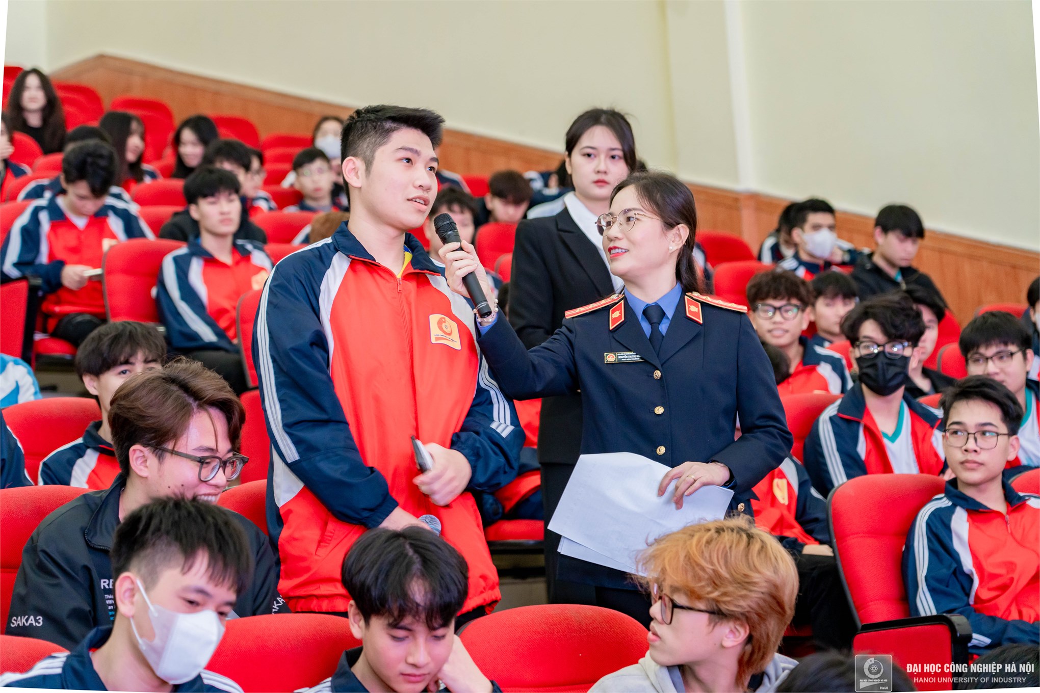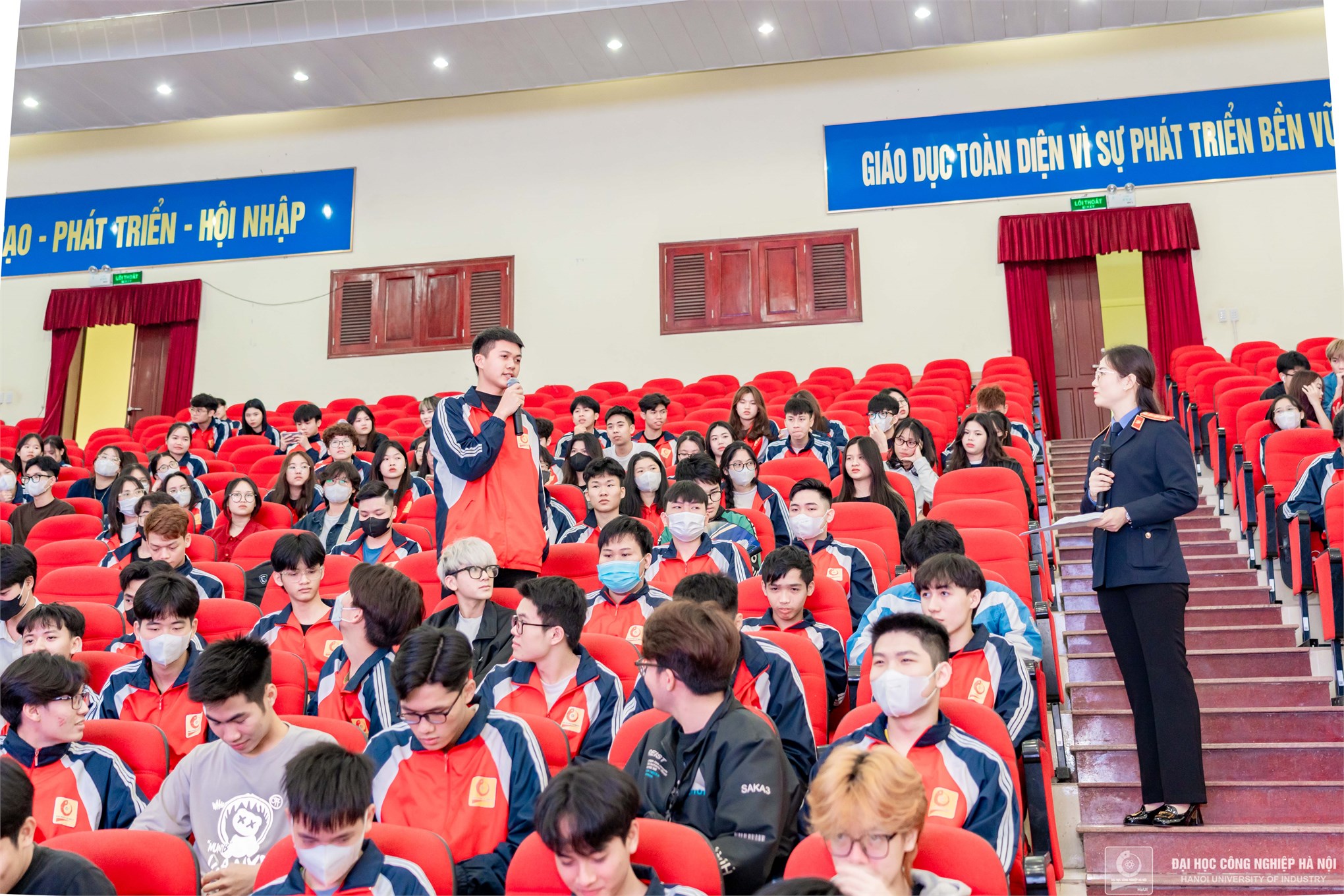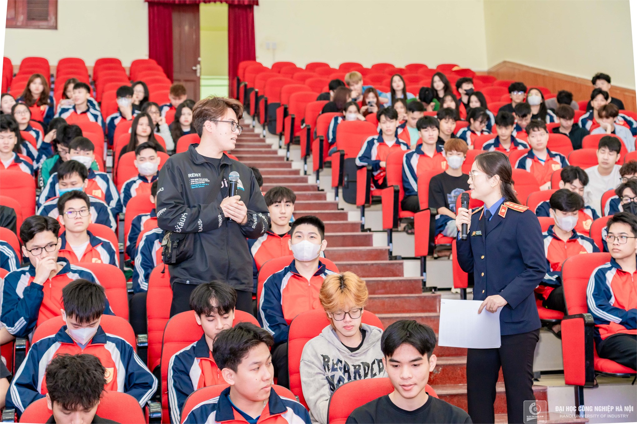 Đại diện Viện Kiểm sát nhân dân thành phố Phủ Lý và sinh viên năm 1, Đại học Công nghiệp Hà Nội đang học tập tại cơ sở Hà Nam đã có nhiều chia sẻ, hỏi đáp, giao lưu sôi nổi, bổ ích.