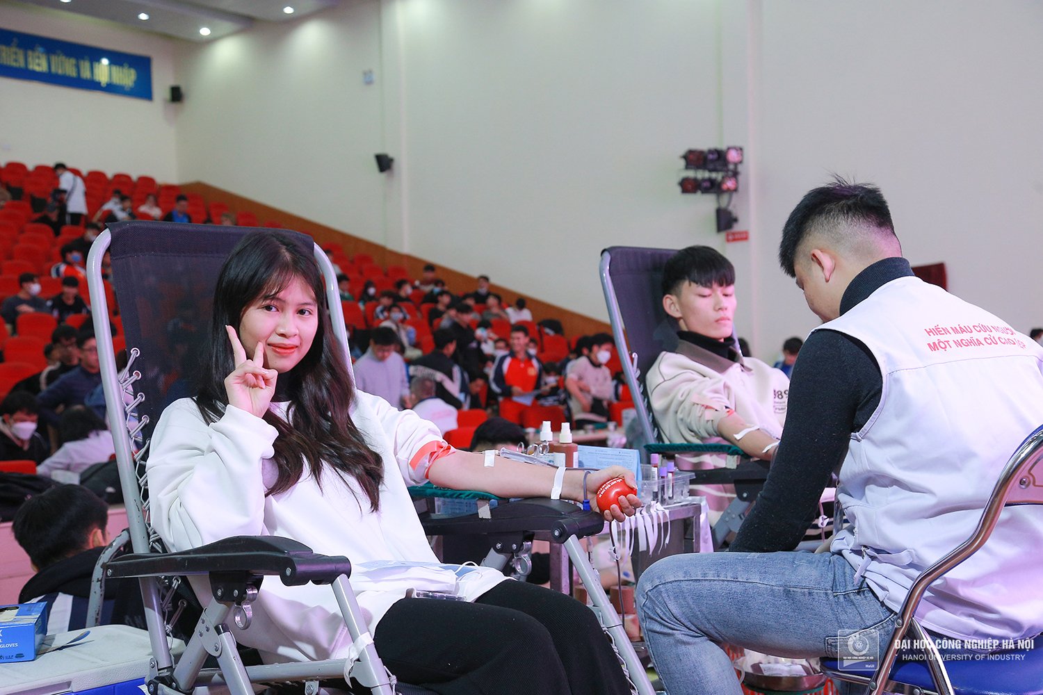 Thể hiện tinh thần “tuổi trẻ vì cộng đồng”, sinh viên HaUI đã có mặt từ rất sớm và xếp hàng chờ đợi để thực hiện nghĩa cử tốt đẹp. Những đơn vị máu được hiến sẽ cung cấp kịp thời cho những ca cấp cứu, góp phần cứu sống tính mạng của rất nhiều bệnh nhân.