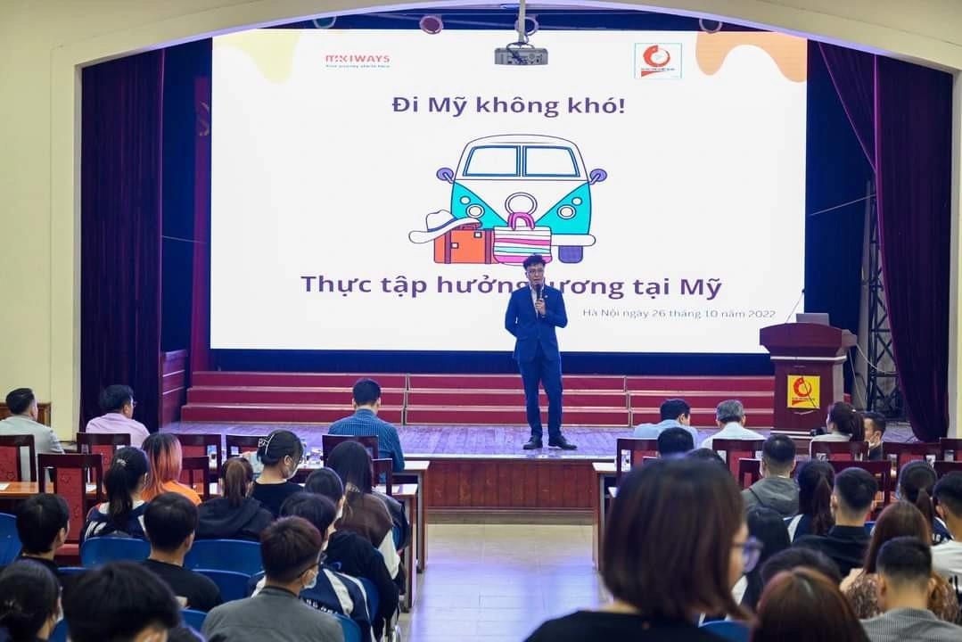 Sinh viên Đại học Công Nghiệp Hà Nội nghe giới thiệu về chương trình thực tập tại Mỹ (Ảnh: Mikiway).