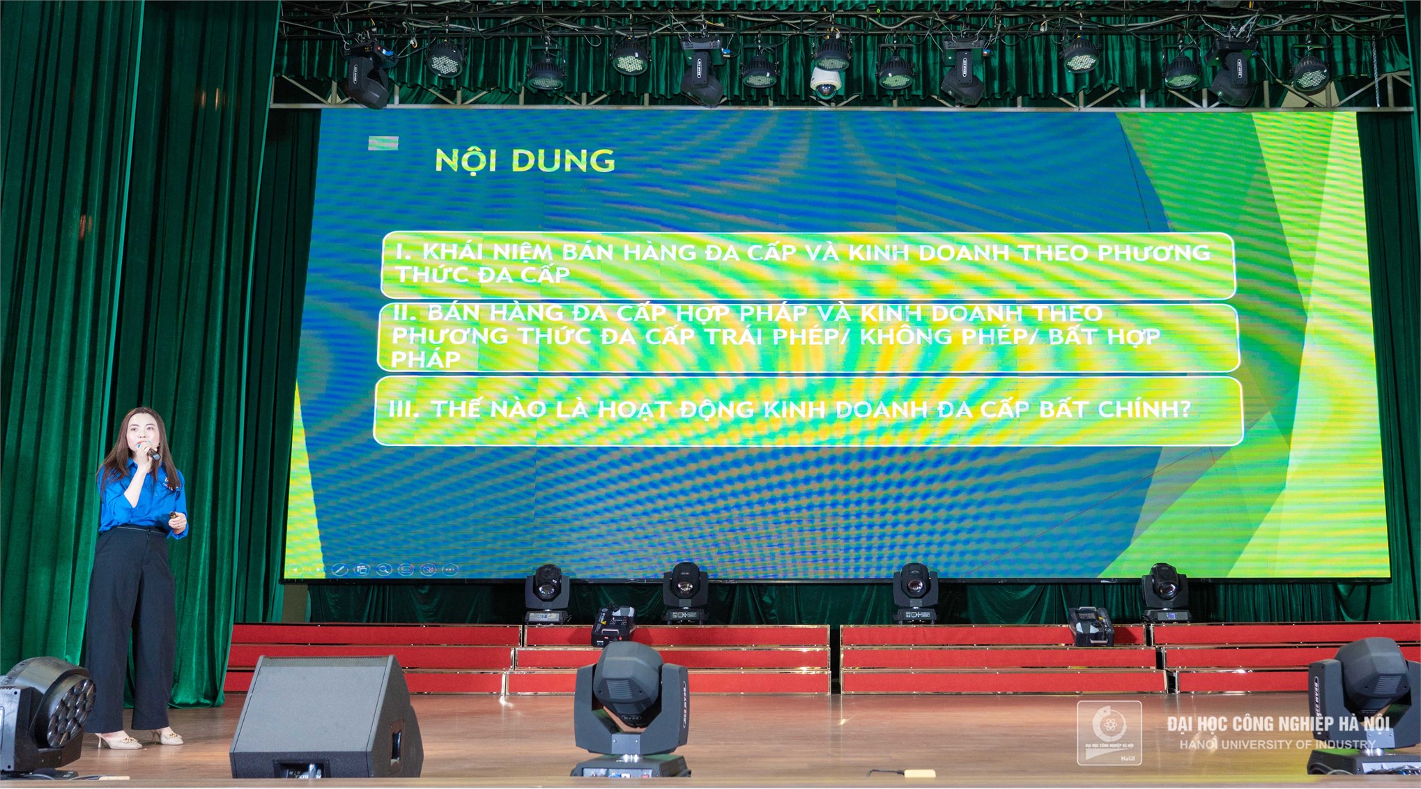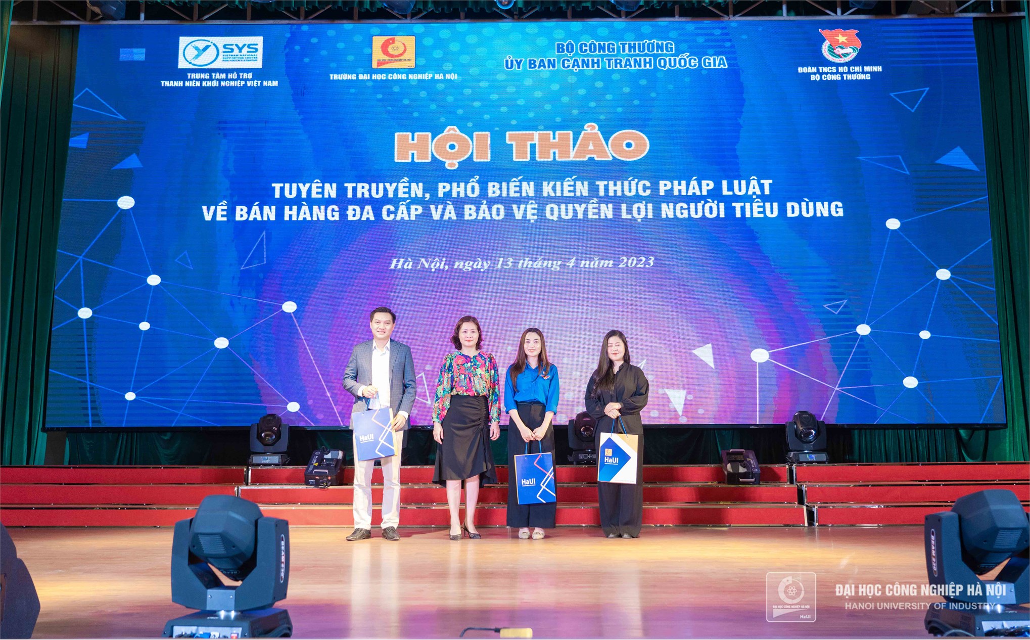 Ngày 15/4, hội thảo “Tuyên truyền, phổ biến kiến thức pháp luật về bán hàng đa cấp và bảo vệ quyền lợi người tiêu dùng” do Trường Đại học Công nghiệp Hà Nội phối hợp Trung tâm Hỗ trợ thanh niên khởi nghiệp Việt Nam, Trung ương Hội Liên hiệp thanh niên Việt Nam; Uỷ ban Cạnh tranh và bảo vệ người tiêu dùng, Bộ Công Thương tổ chức đã thu hút hơn 500 sinh viên tham gia.