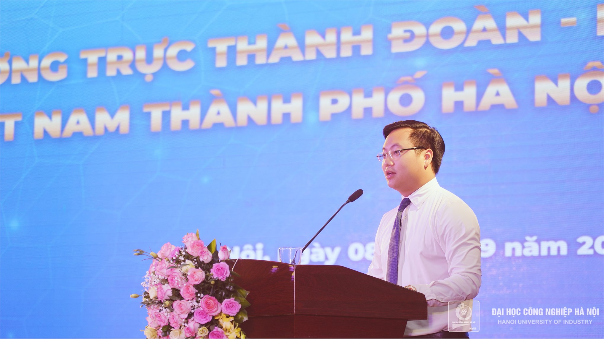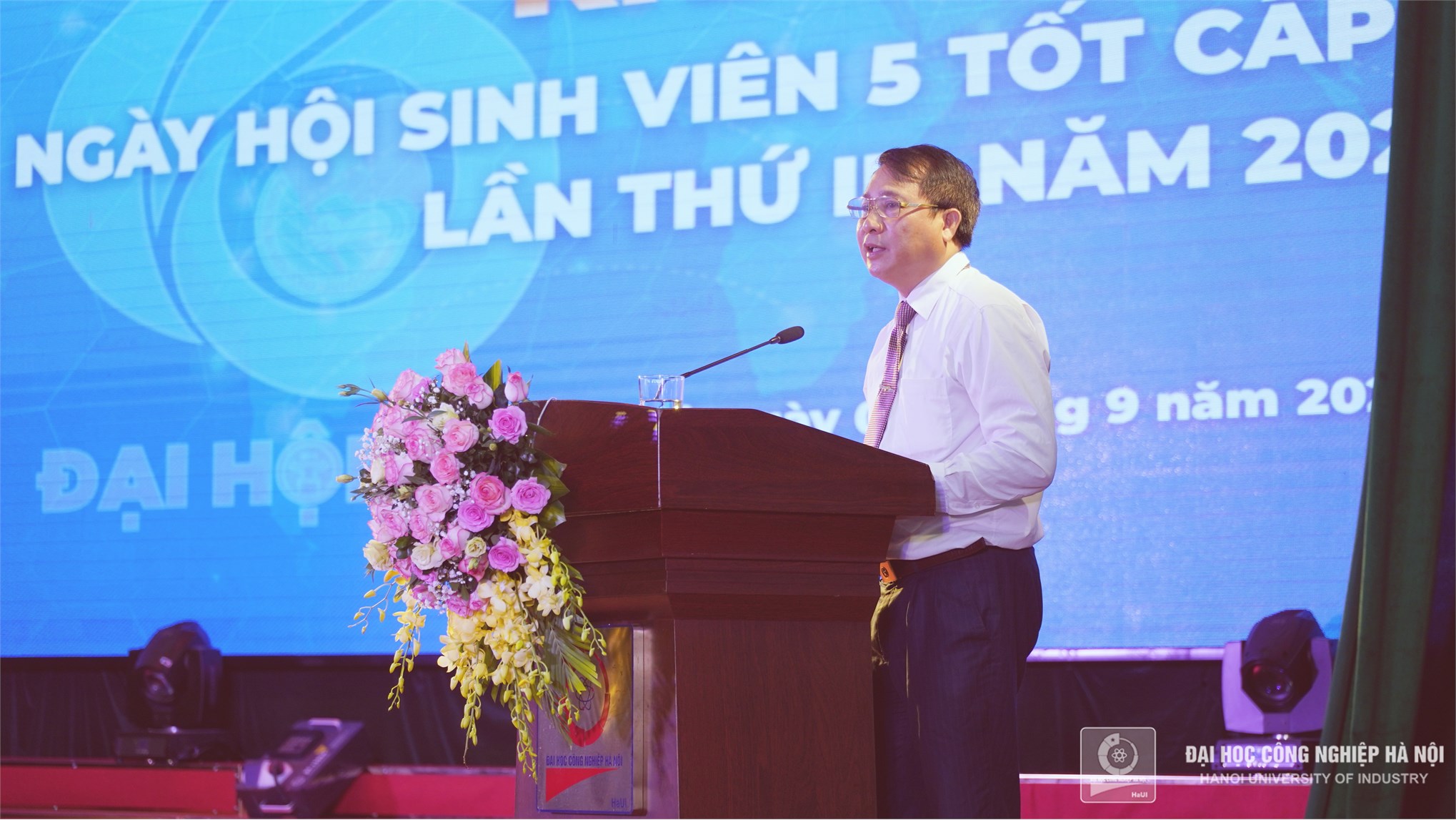 Thay mặt Lãnh đạo Trường Đại học Công nghiệp Hà Nội, PGS.TS.Lê Hồng Quân, Phó Bí thư đảng ủy, Chủ tịch Hội đồng trường chúc mừng kết quả hoạt động của Đoàn thanh niên, Hội sinh viên thành phố đã đạt được trong những năm qua và cảm ơn sự tin tưởng, lựa chọn Trường Đại học Công nghiệp Hà Nội là nơi đăng cai ngày hội sinh viên 5 tốt năm 2022. Hi vọng trong thời gian tới Ban chấp hành Đoàn thanh niên, Hội sinh viên thành phố tiếp tục có nhiều chương trình hoạt động hơn nữa để tạo điều kiện cho đoàn viên, thanh niên đang học tập tại các trường đại học, cao đẳng và học viện trên địa bàn thành phố Hà Nội có cơ hội thể hiện tài năng, bản lĩnh và hướng đến danh hiệu sinh viên 5 tốt.