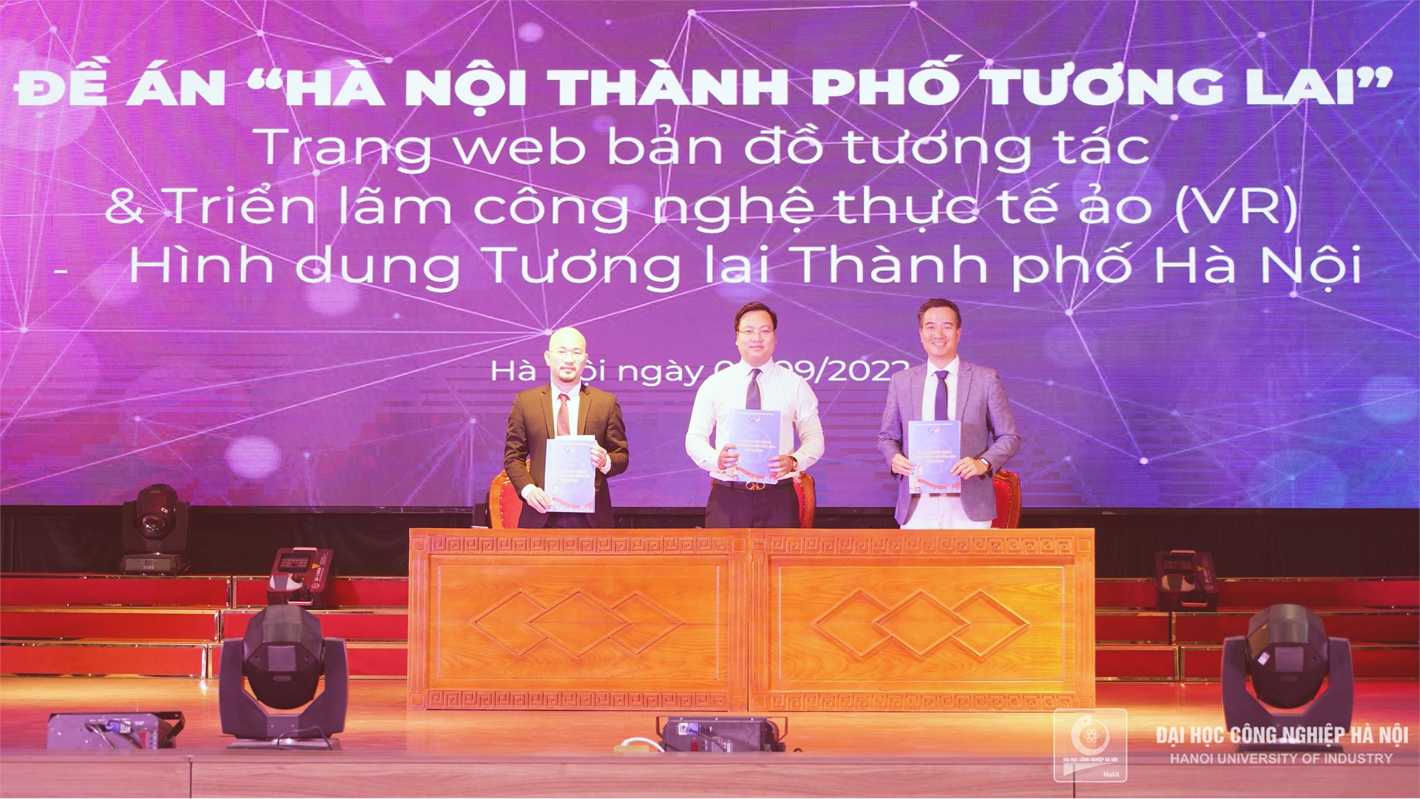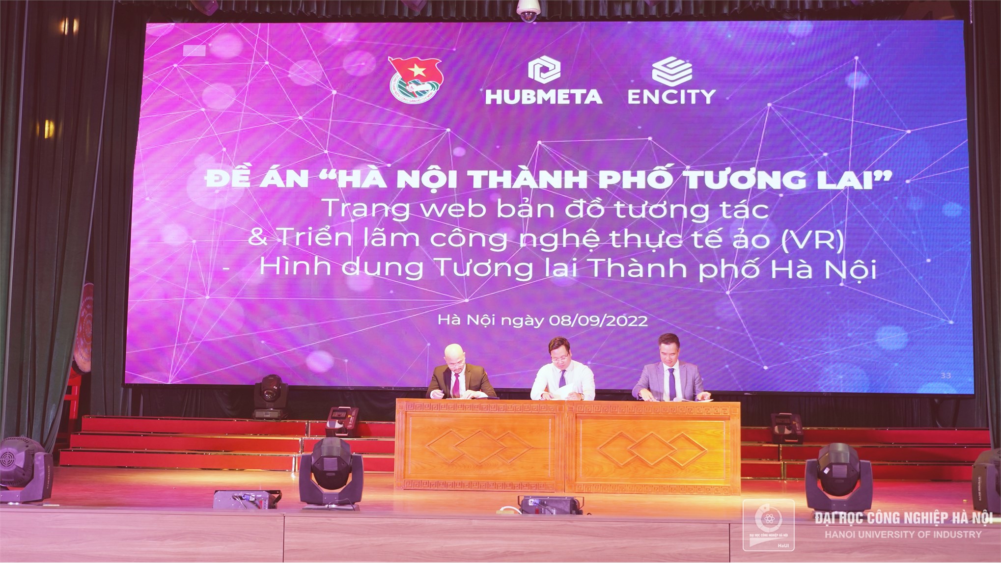 Đồng chí Trần Quang Hưng - UV BCH Trung ương Đoàn, Phó Bí thư Thành đoàn Hà Nội, Chủ tịch Hội Sinh viên Thành phố; Ông Đoàn Trung Duy - Tổng Giám đốc Công ty cổ phần Viện nghiên cứu Chuyển đổi số và quản trị thông minh HUBMETA; Và ông Nguyễn Đỗ Dũng - Tổng giám đốc công ty tư vấn quốc tế ENCITY ký biên bản ghi nhớ hợp tác.