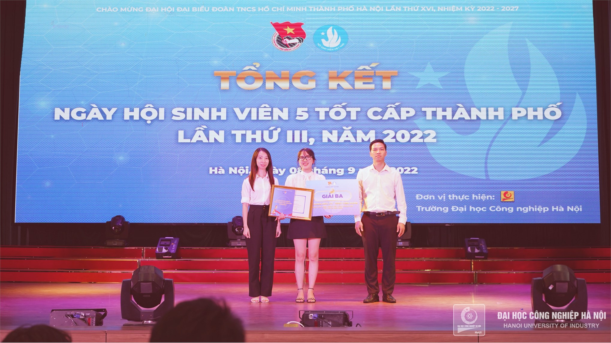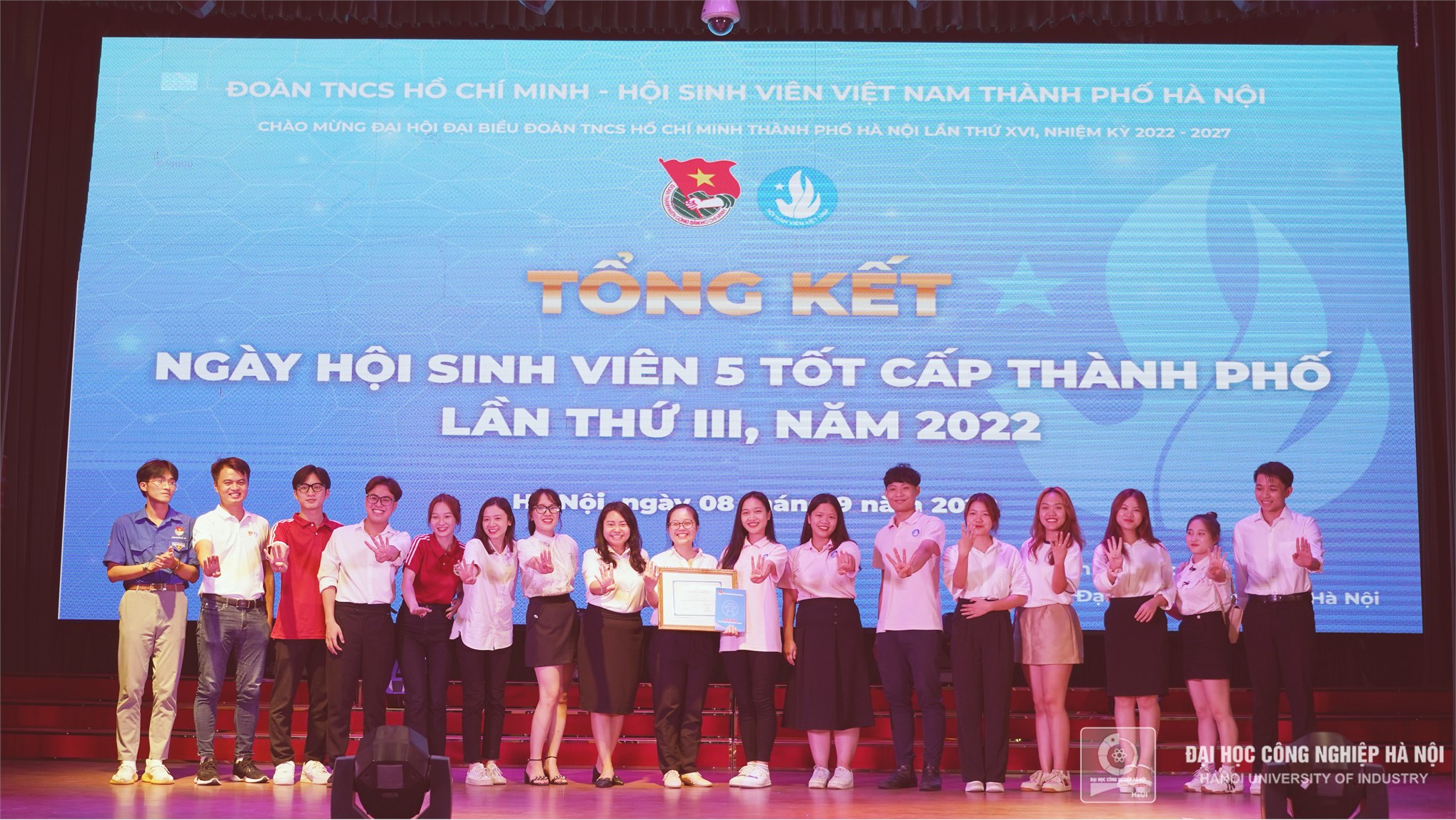 Thực hiện Chương trình công tác Đoàn - Hội và phong trào thanh niên, sinh viên Thủ đô; nhằm tạo môi trường rèn luyện, phấn đấu cho sinh viên đạt được danh hiệu Sinh viên 5 tốt, phát huy sức sáng tạo, trí tuệ của sinh viên Thủ đô, ngày 08/9/2022 Thành đoàn – Hội Sinh viên Việt Nam thành phố Hà Nội phối hợp với Trường Đại học Công nghiệp Hà Nội tổ chức Ngày hội Sinh viên 5 tốt cấp Thành phố lần thứ III, năm 2022.