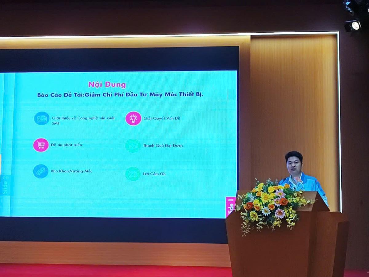 Sau quá trình đánh giá, tìm hiểu, tính toán, kỹ sư Vũ Khắc Hùng cùng các thành viên trong nhóm kỹ thuật sản xuất phát triển sản phẩm mới đã bắt tay vào triển khai thực hiện cải tiến với phương châm, không ngại khó khăn, thách thức. Cuối cùng, nhóm đã hoàn thiện kết nối máy in kem hàn, máy SPI, máy Mouter, tách 1 Line thành 2 Line riêng biệt để tối ưu hóa tốc độ, tăng năng suất Line; lập trình lại tất cả chương trình máy trong Line sản xuất để có thể phù hợp với line sau cải tiến; hoàn thành kết nối mạng trong Line SMT, đảm bảo tốc độ cao, thông suốt. Kết quả, cải tiến đã giúp giảm chi phí nhân công hơn 1,5 tỷ đồng; giảm chi phí đầu tư máy móc hơn 4 tỷ đồng; giảm chi phí nguyên vật liệu trên 1,7 tỷ đồng. Tổng giá trị tiết kiệm mà cải tiến mang lại là hơn 7,2 tỷ đồng.