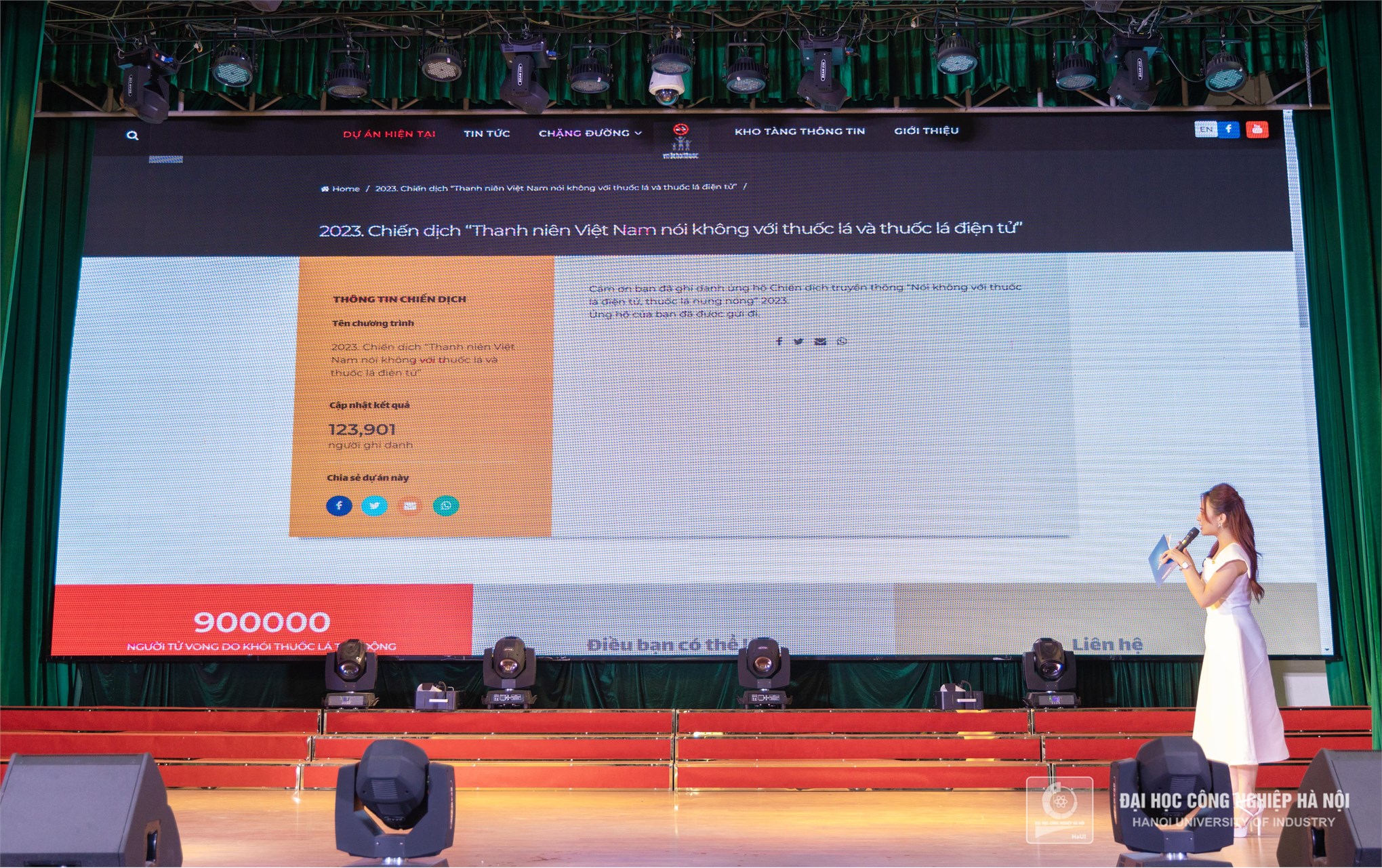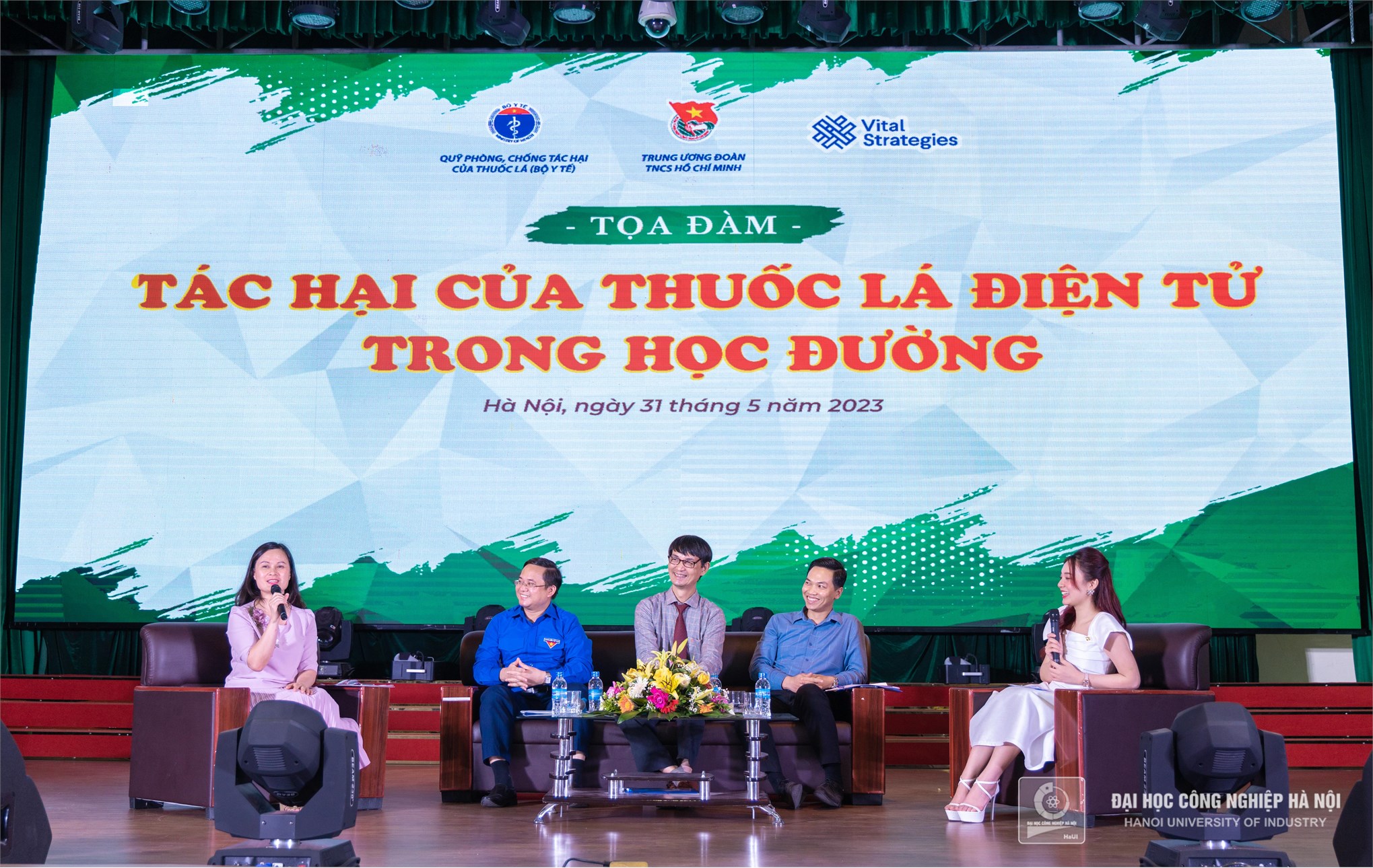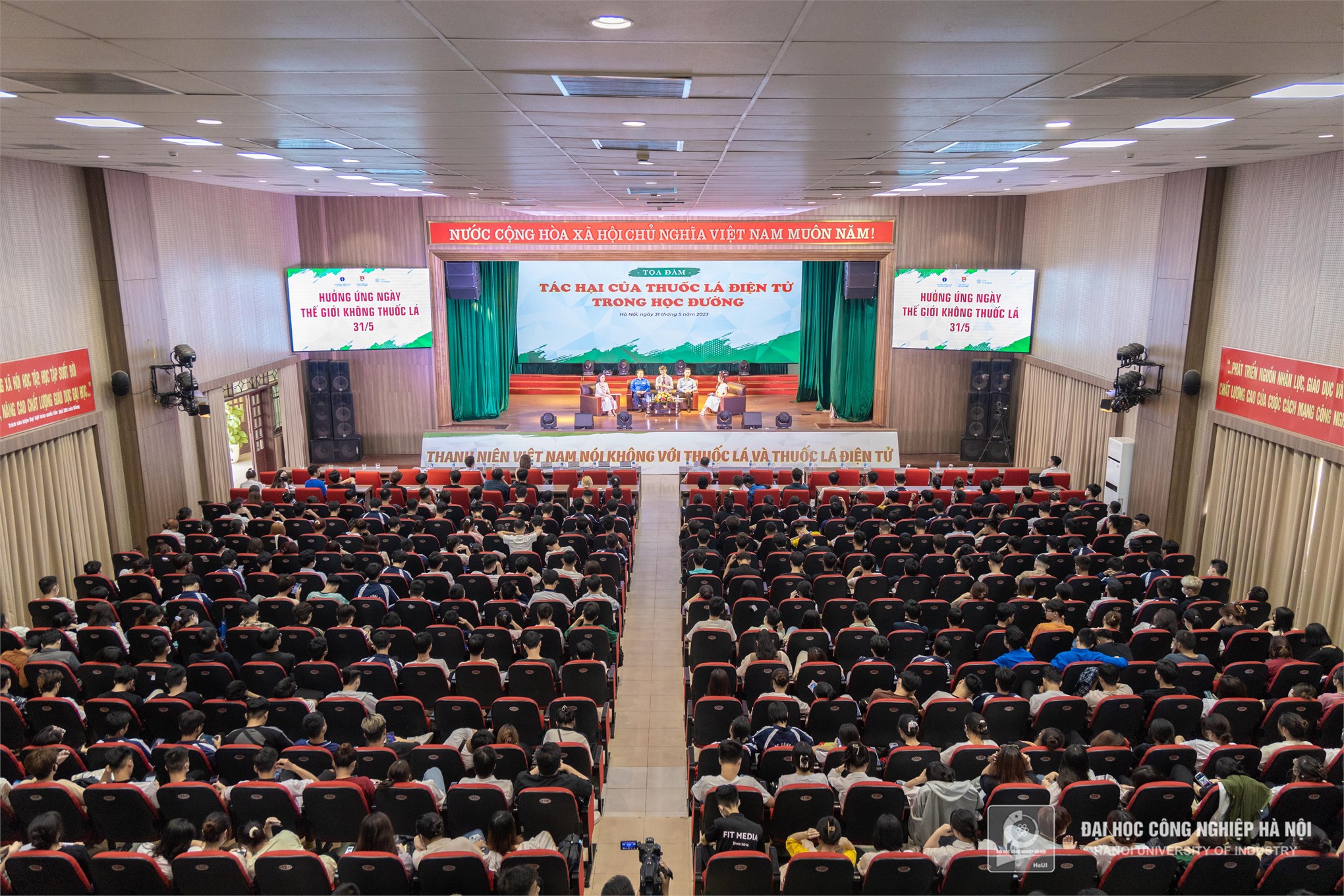 Ngày 31/5/2023, Đoàn thanh niên Trường Đại học Công nghiệp Hà Nội đăng cai tổ chức toạ đàm “Tác hại của thuốc lá điện tử trong học đường” do Trung ương Đoàn và Quỹ phòng, chống tác hại của thuốc lá (Bộ Y tế) phát động. Chương trình thu hút hơn 600 đoàn viên, thanh niên nhà trường tham gia.