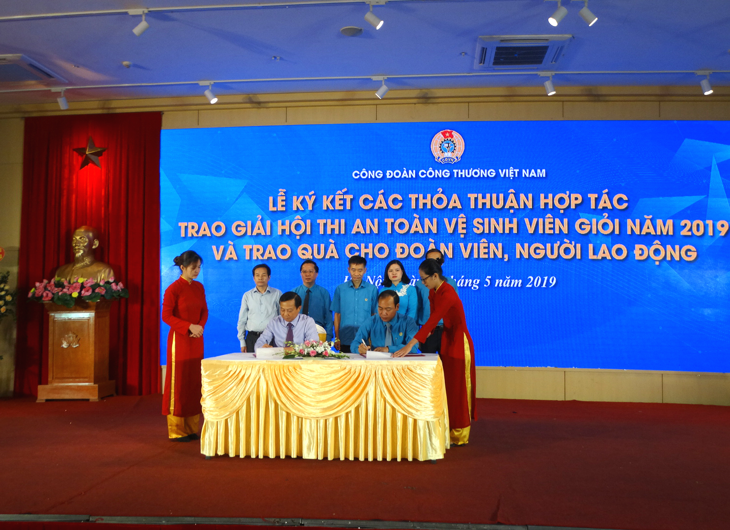 Sáng 29/5/2019, tại Trung tâm Hội nghị 37 Hùng Vương, Ba Đình, Hà Nội, Công đoàn Công thương Việt Nam (CĐCTVN) tổ chức Lễ ký kết các Thỏa thuận hợp tác, trao giải Hội thi An toàn vệ sinh viên giỏi năm 2019 và trao quà cho đoàn viên, người lao động có hoàn cảnh khó khăn.