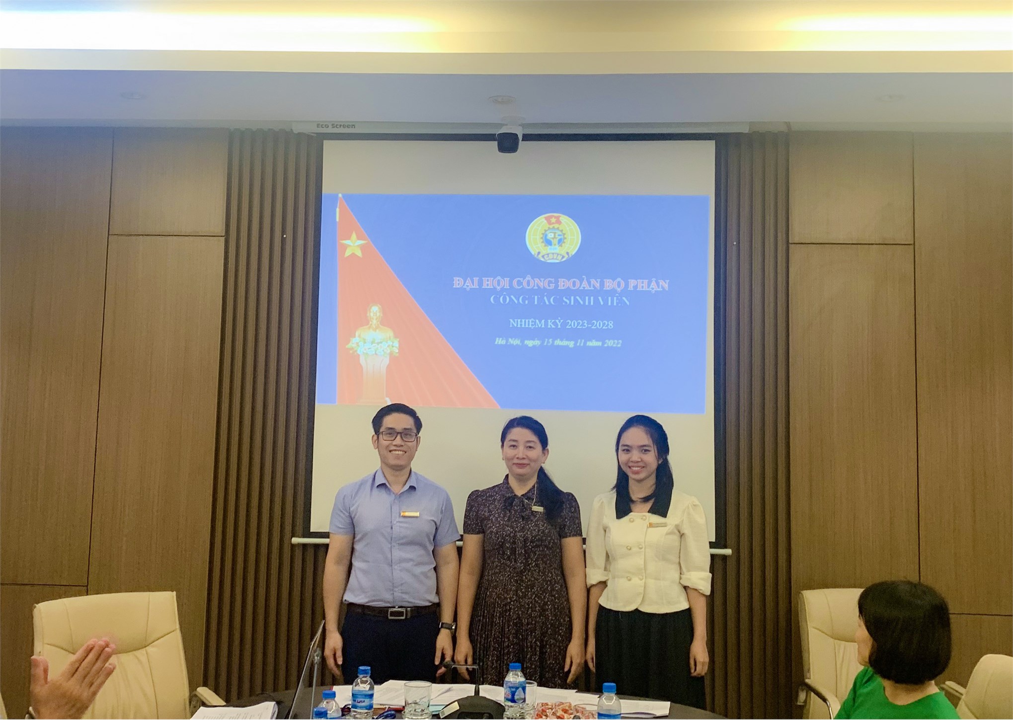 Ban chấp hành Công đoàn bộ phận phòng Công tác Sinh viên nhiệm kỳ 2023-2028: đ/c Nguyễn Thị Ngọc Anh, đ/c Nguyễn Tiến Tấn, đ/c Trần Thị Phương