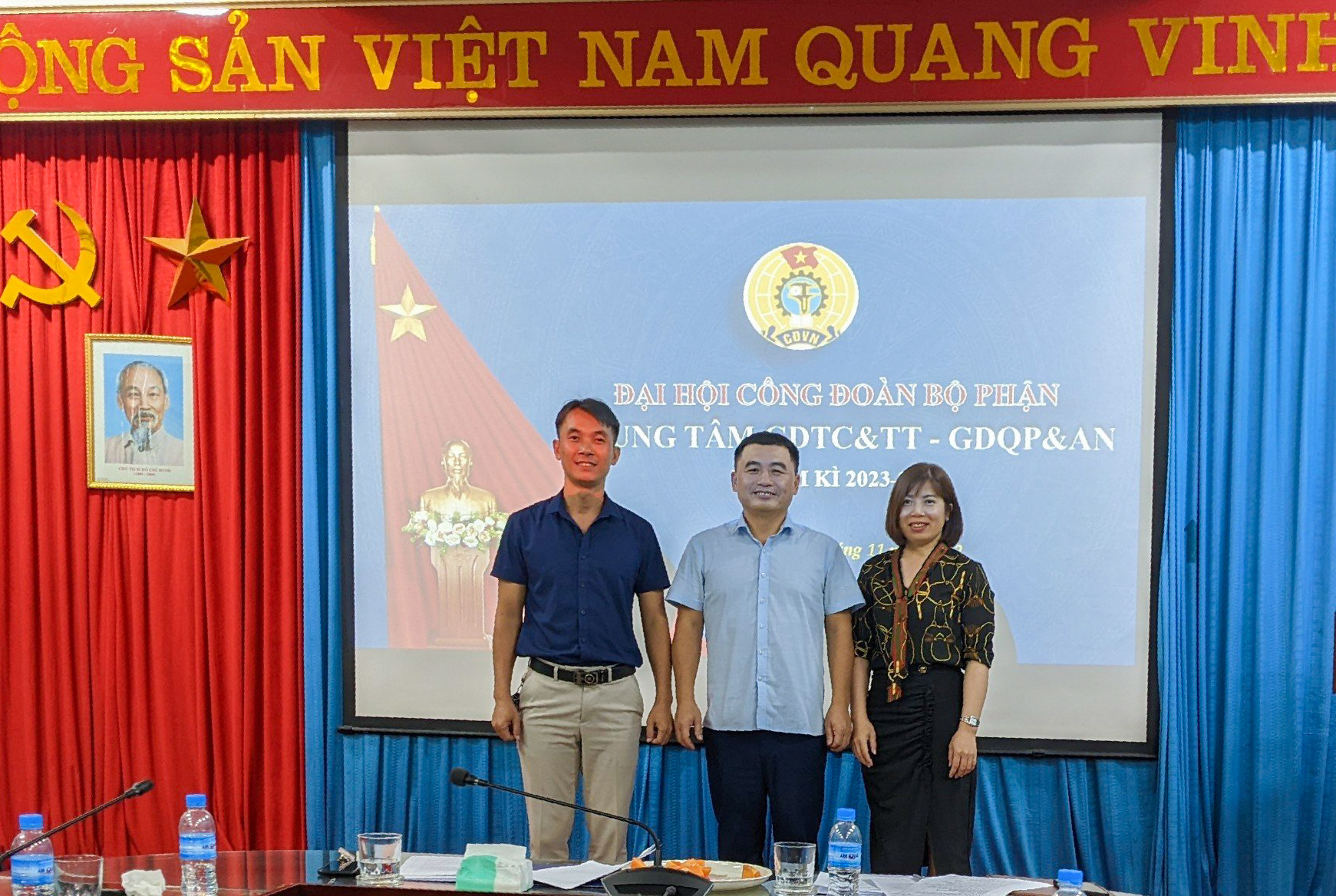 Ban chấp hành Công đoàn bộ phận TT Giáo dục Quốc phòng An ninh - TT Giáo dục Thể chất và Thể thao nhiệm kỳ 2023 - 2028 gồm: đ/c Nguyễn Hoàng Dương, đ/c Nguyễn Thị Thu Huyền, đ/c Đặng Xuân Quang