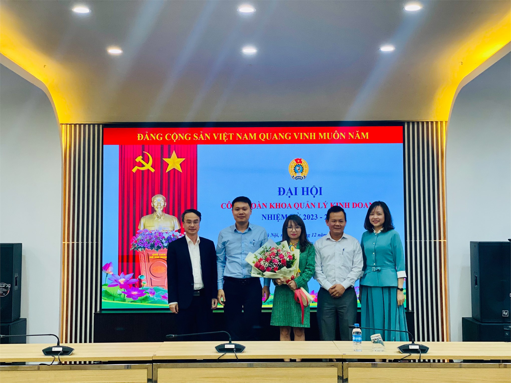 Ban chấp hành Công đoàn bộ phận Khoa Quản lý kinh doanh nhiệm kỳ 2023 - 2028 gồm: đ/c Hà Thành Công, đ/c Đỗ Hải Hưng, đ/c Phạm Thị Hương Giang